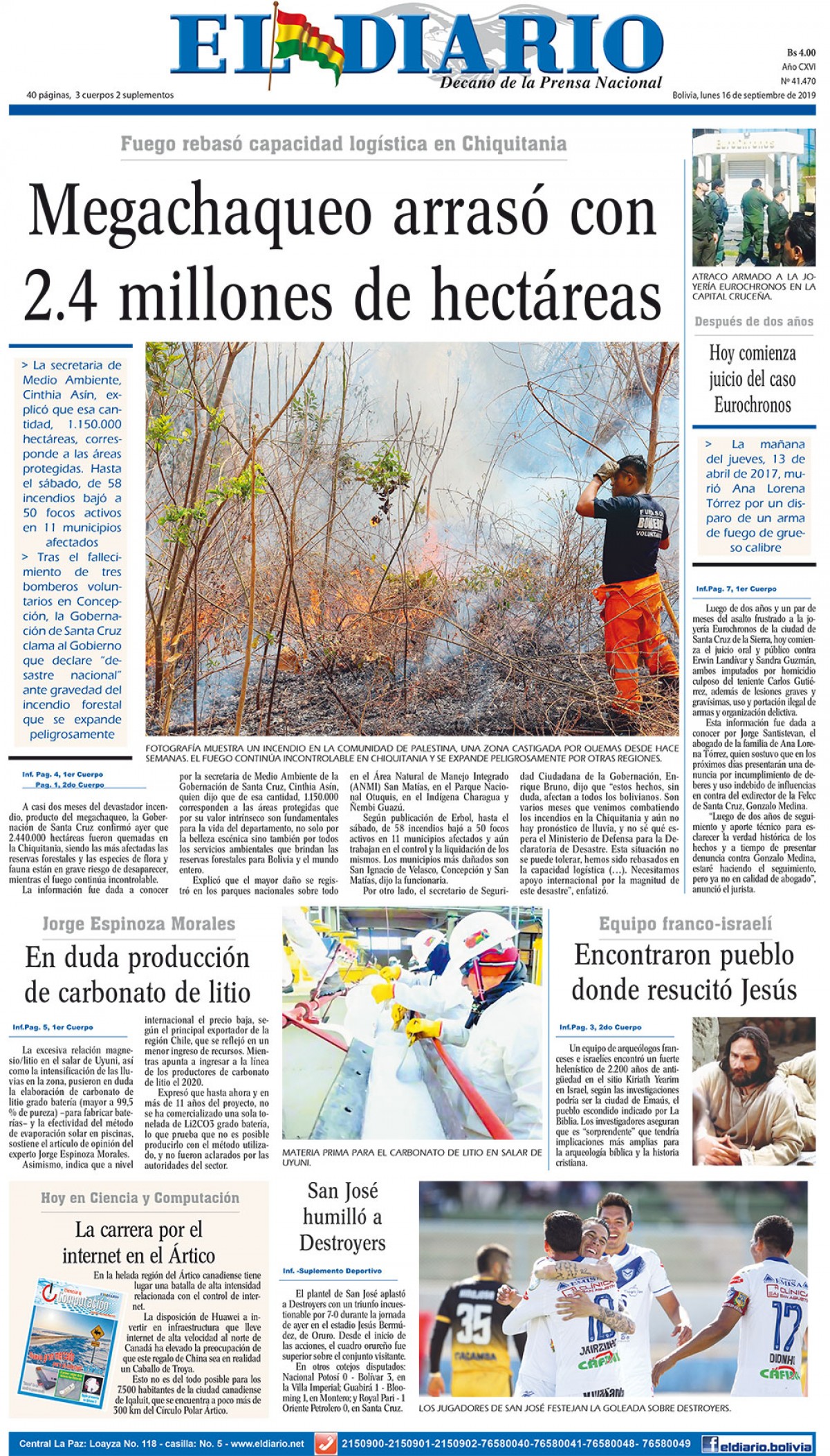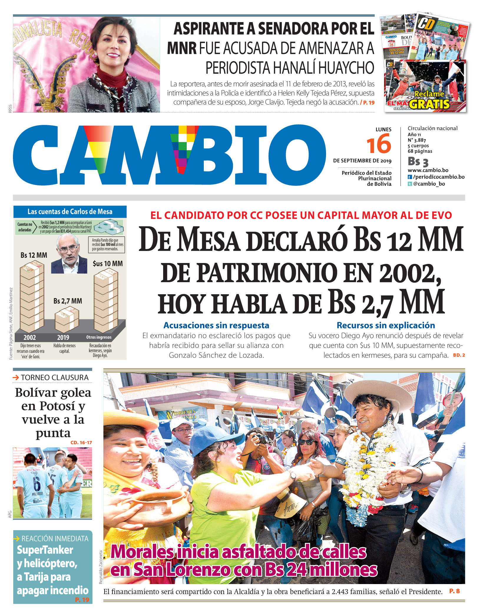 Portadas de periódicos de Bolivia del lunes 16 de septiembre de 2019Categorías MonitoreoEtiquetas , Portadas de periódicos 16/09/2019 El Deber – Los Tiempos – El Día – La Razón – Cambio – El Diario – Página Siete – Opinión