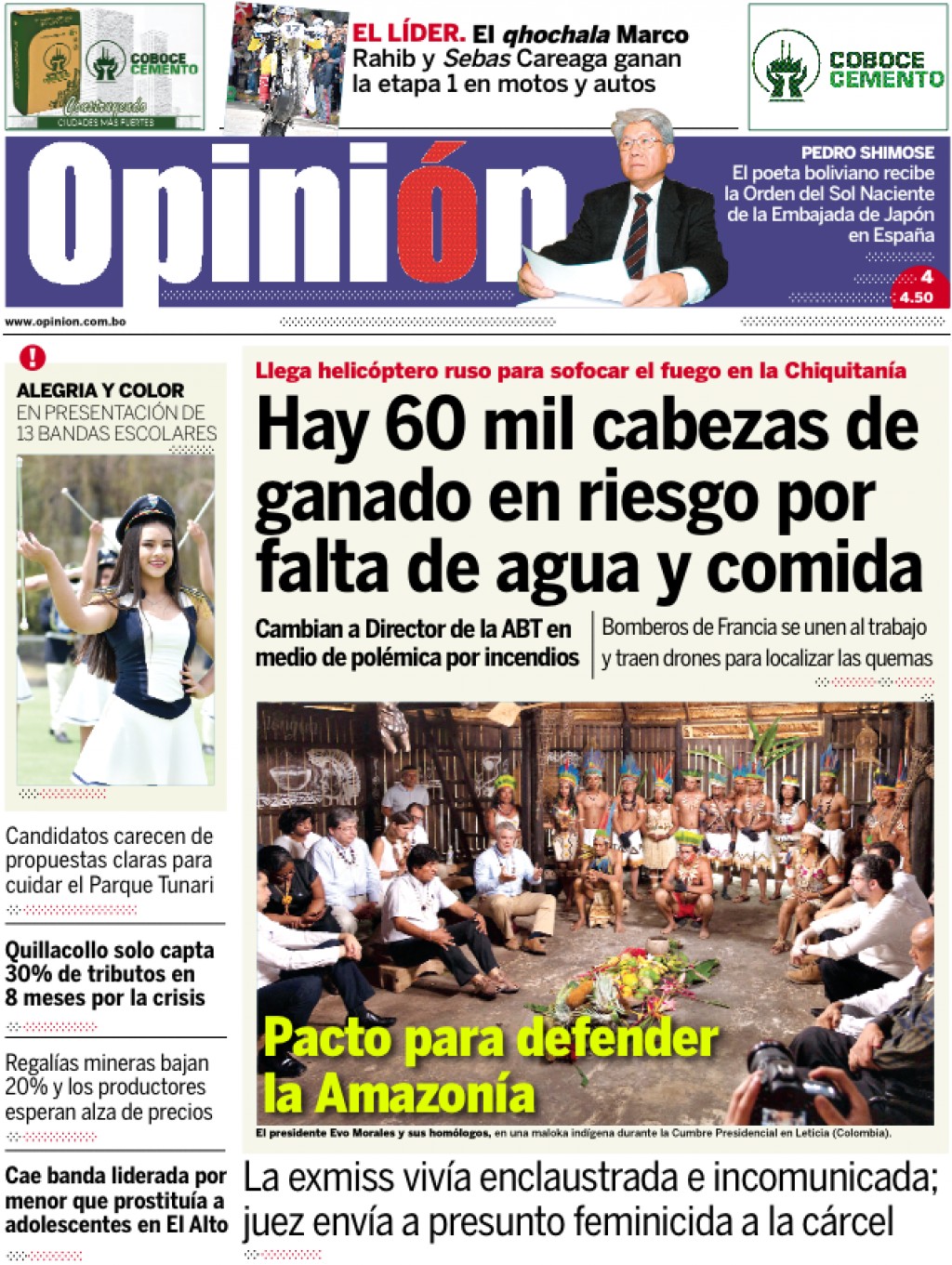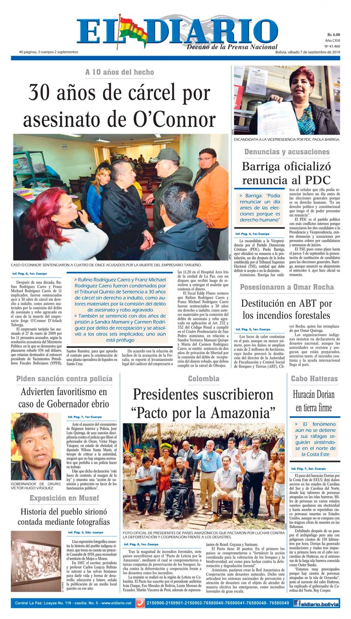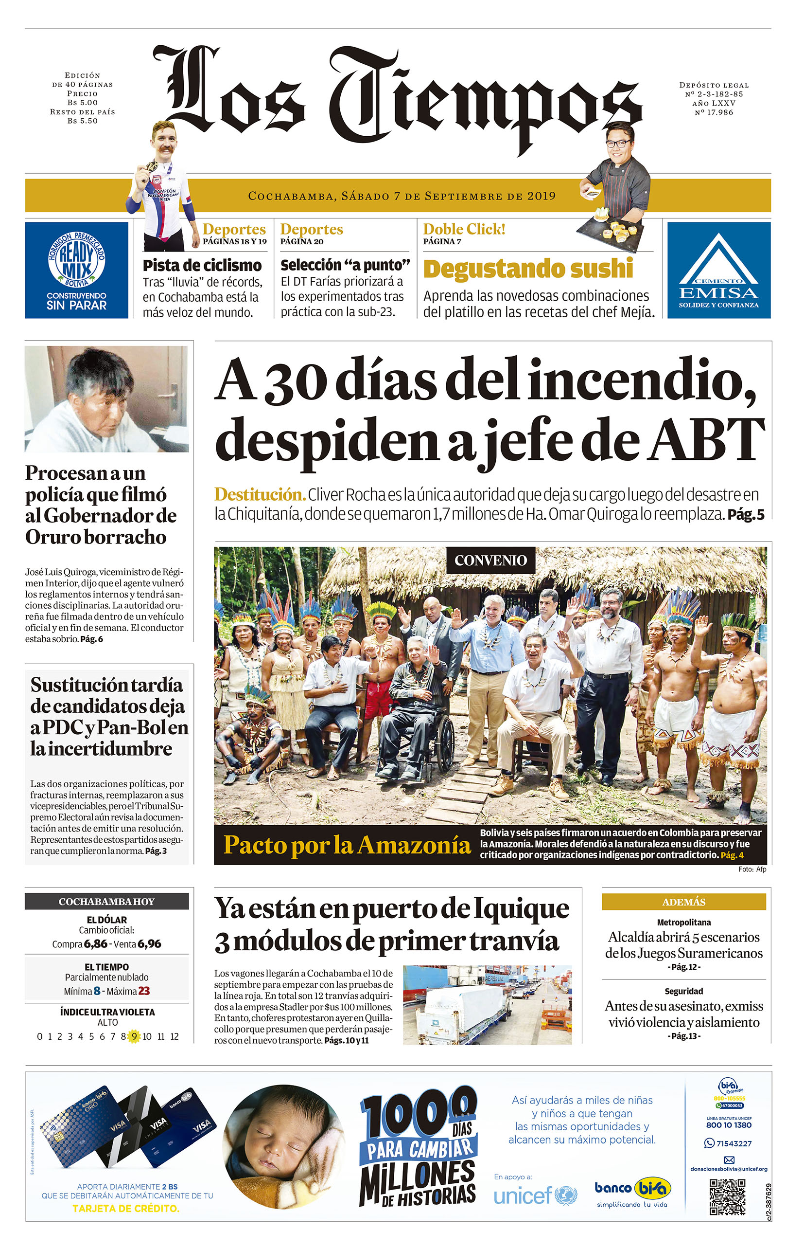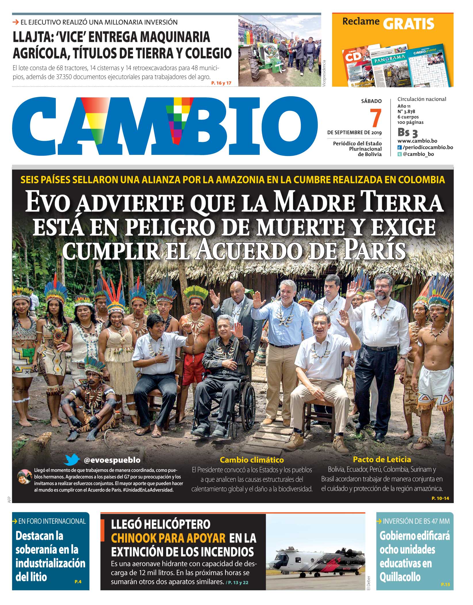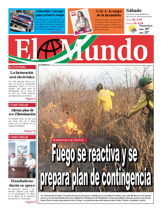 Portadas de periódicos de Bolivia del sábado 7 de septiembre de 2019Categorías MonitoreoEtiquetas , Portadas de periódicos 07/09/2019 El Deber – Los Tiempos – El Día – La Razón – Cambio – El Diario – Página Siete – Opinión