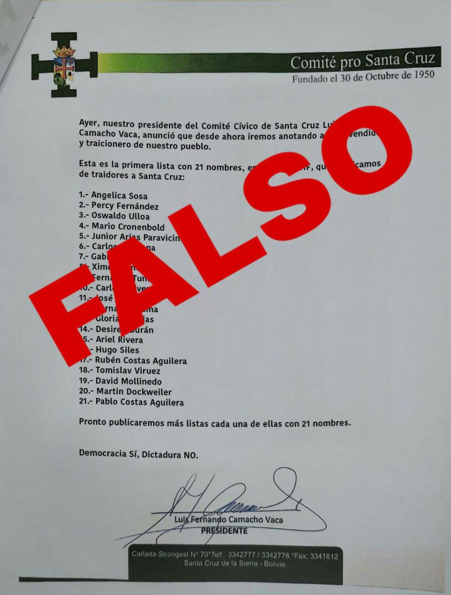 Aclaramos que el Comité pro Santa Cruz NO EMITIÓ esta falsa lista.