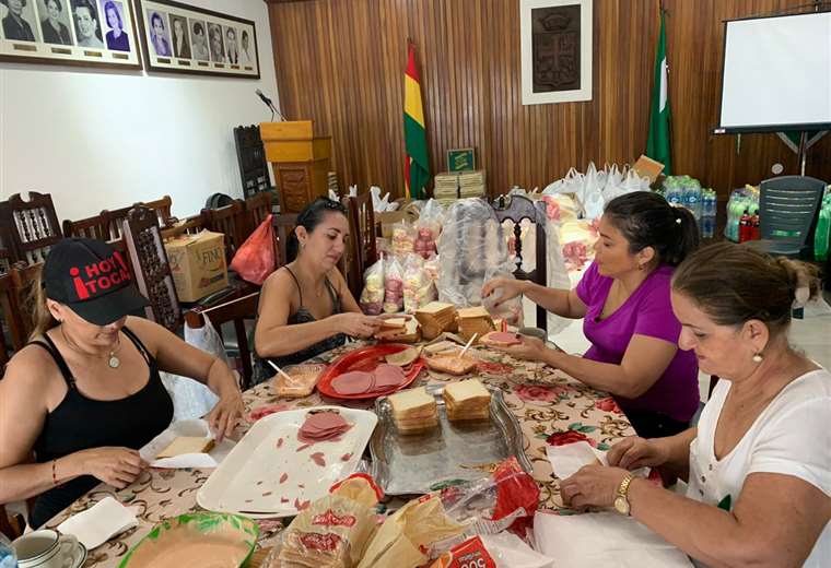 En su sede de la calle Cañada Strongest #70, las integrantes del Comité Cívico Femenino, presididas por María Elba Roca, están recibiendo diversos tipos de donaciones que después son distribuidos entre las personas que están participando en el paro cívico.“La gente es solidaria y no está trayendo alimentos, muchos de ellos no perecederos, como fideo y arroz, que después entregamos a quienes están preparando comida en las ollas comunes en las rotondas de las avenidas y en los barrios”, manifestó Dorys Velarde, directiva de las cívicas.También explicó que reciben otros tipos de ingredientes alimenticios, como pan, queso y jamón, con los que ellas preparan sándwiches que reparten a las personas que participan activamente en este movimiento que lucha por la democracia boliviana.Velarde manifestó que quienes deseen realizar donaciones de alimentos y agua pueden llevarlos a la sede del Comité Cívico Femenino, desde las 08:30 hasta la medianoche. En coordinación con el Comité pro Santa Cruz y Juventud Empresa hacen la distribución de los mismos en diferentes lugares de la ciudad.
