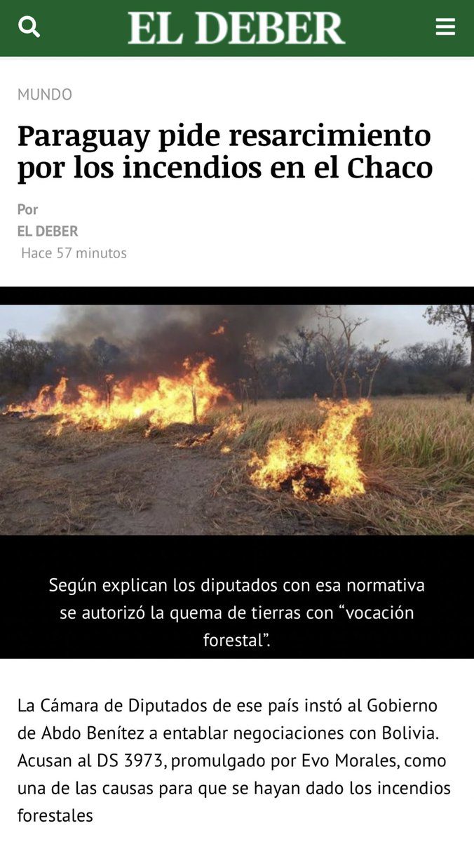Los decretos y leyes de @evoespueblo que permiten chaqueos en nuestros bosques para beneficiar a militantes del MAS, y el no querer declarar desastre nacional no solamente causan destrucción en Bolivia, ahora también nos generan problemas con otros países. #YaEsDemasiado https://t.co/R8HuWfo8Po