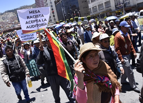 31 de octubre (Urgente.bo).- Ante el pedido del presidente Evo Morales de que las organizaciones sociales y militantes den un cuarto intermedio en las protestas, el presidente del Comité Pro Santa Cruz, Luis Fernando Camacho, y el ejecutivo provincial de los Ponchos Rojos de la provincia Omasuyos de La Paz, Freddy Huanca Silvestre, informaron que no acatarán el cuarto intermedio y continuarán con las movilizaciones.