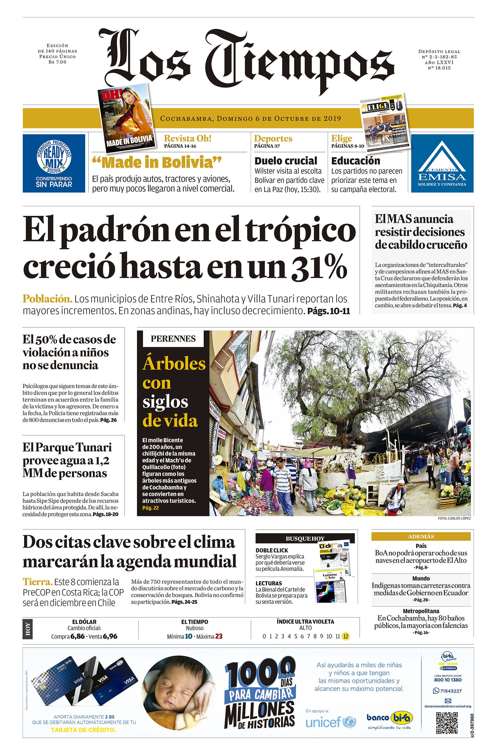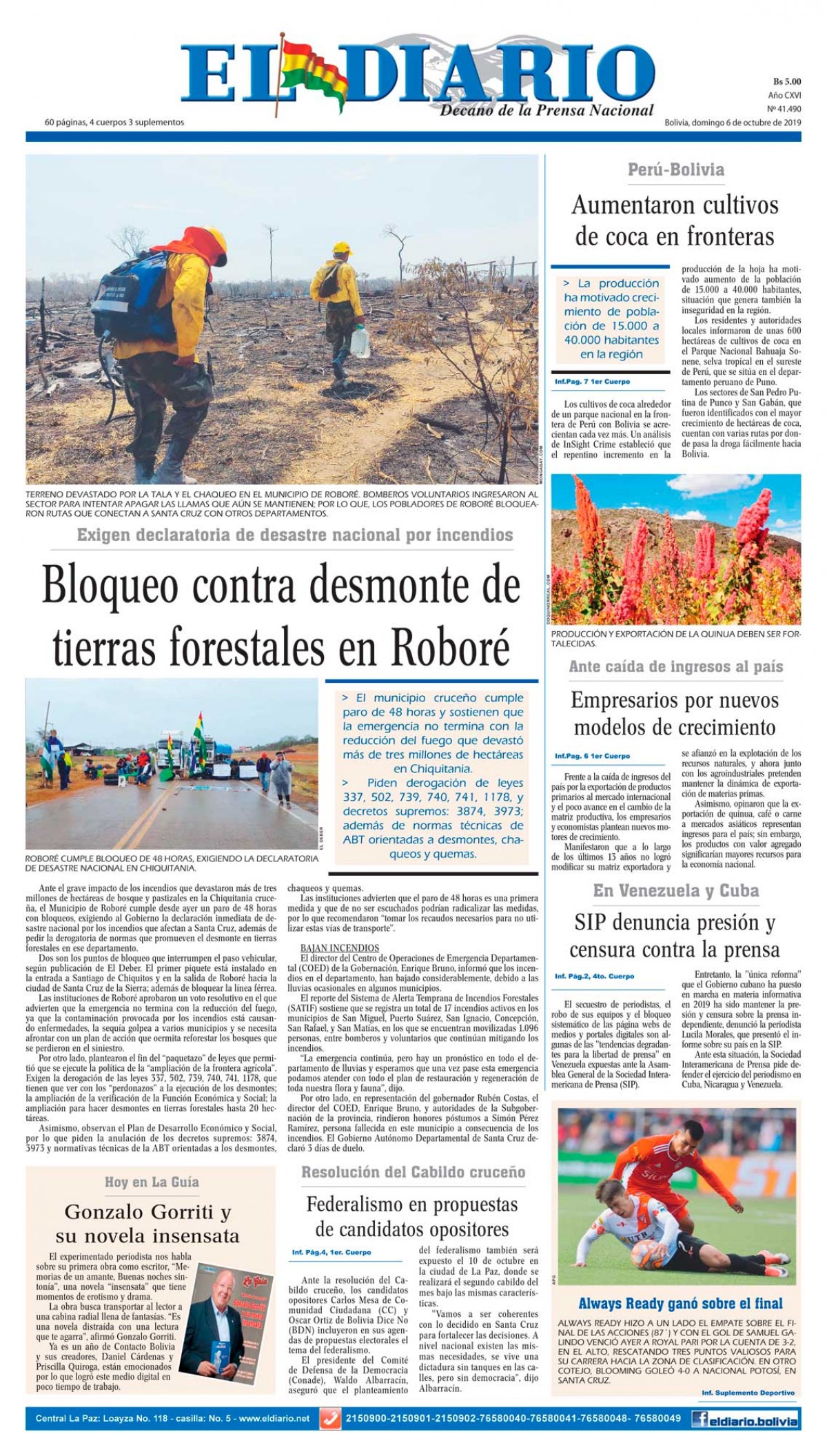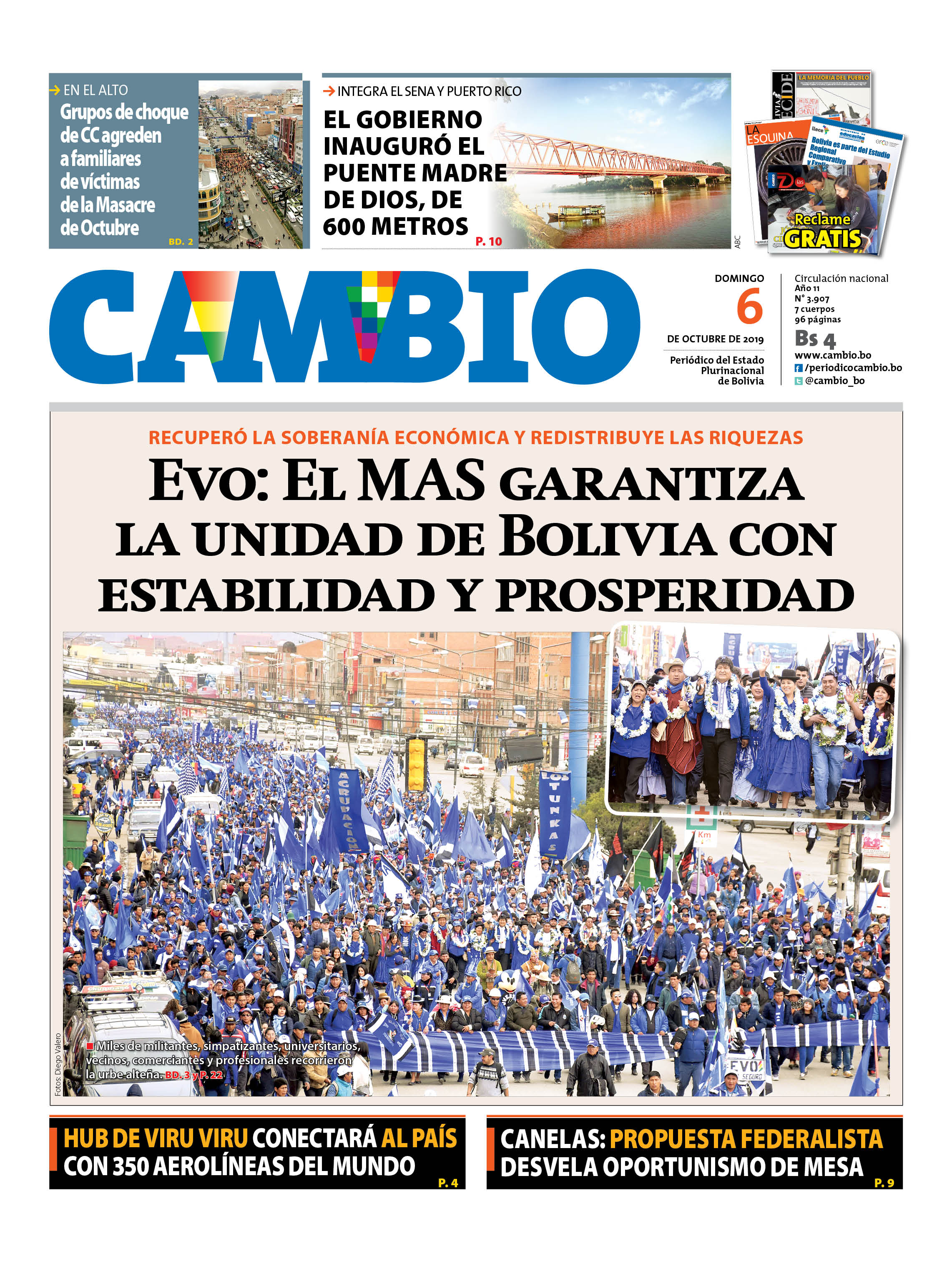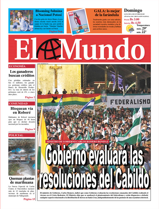 Portadas de periódicos de Bolivia del domingo 6 de octubre de 2019Categorías MonitoreoEtiquetas , Portadas de periódicos 06/10/2019 El Deber – Los Tiempos – El Día – La Razón – Cambio – El Diario – Página Siete – Opinión