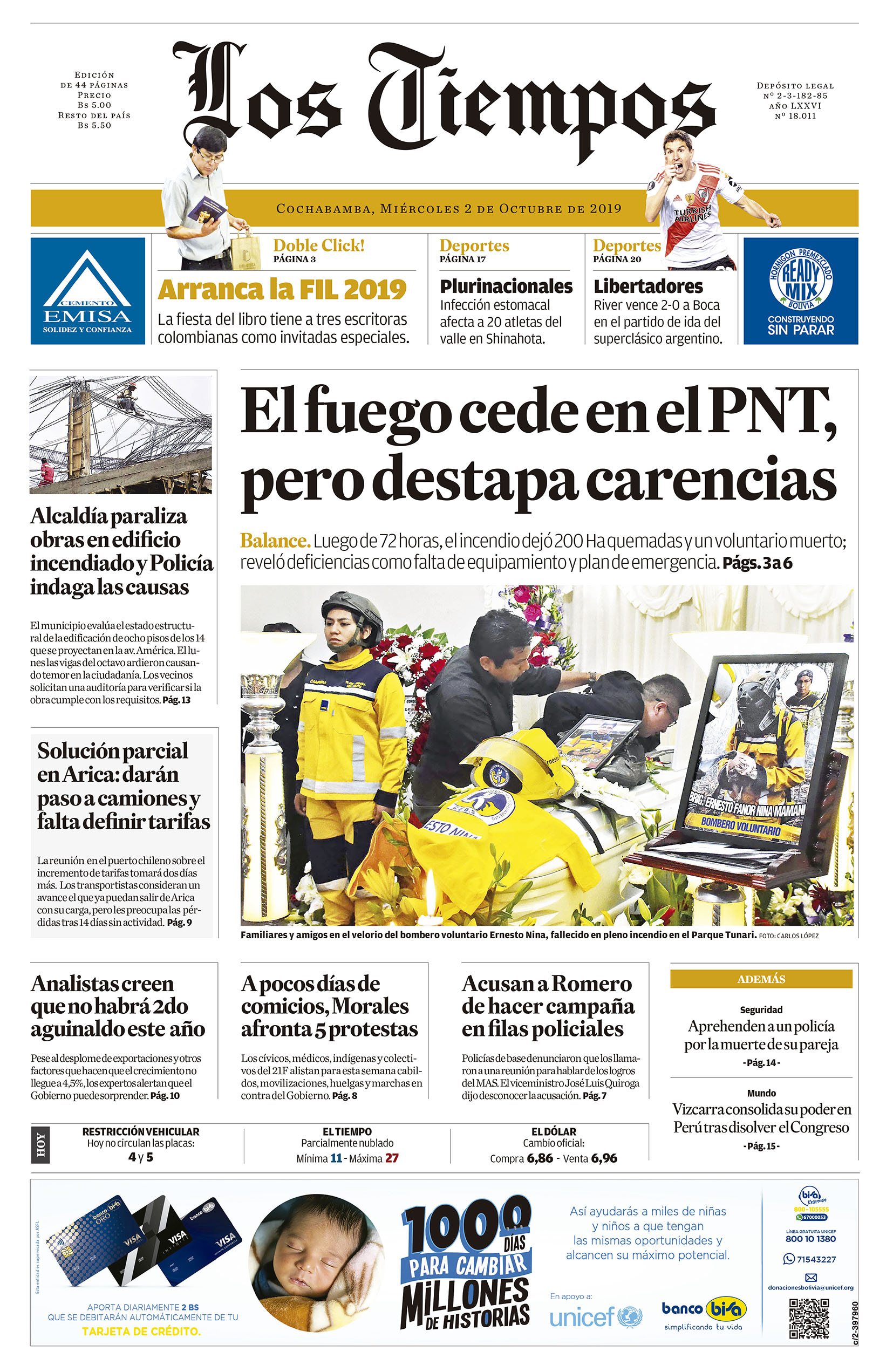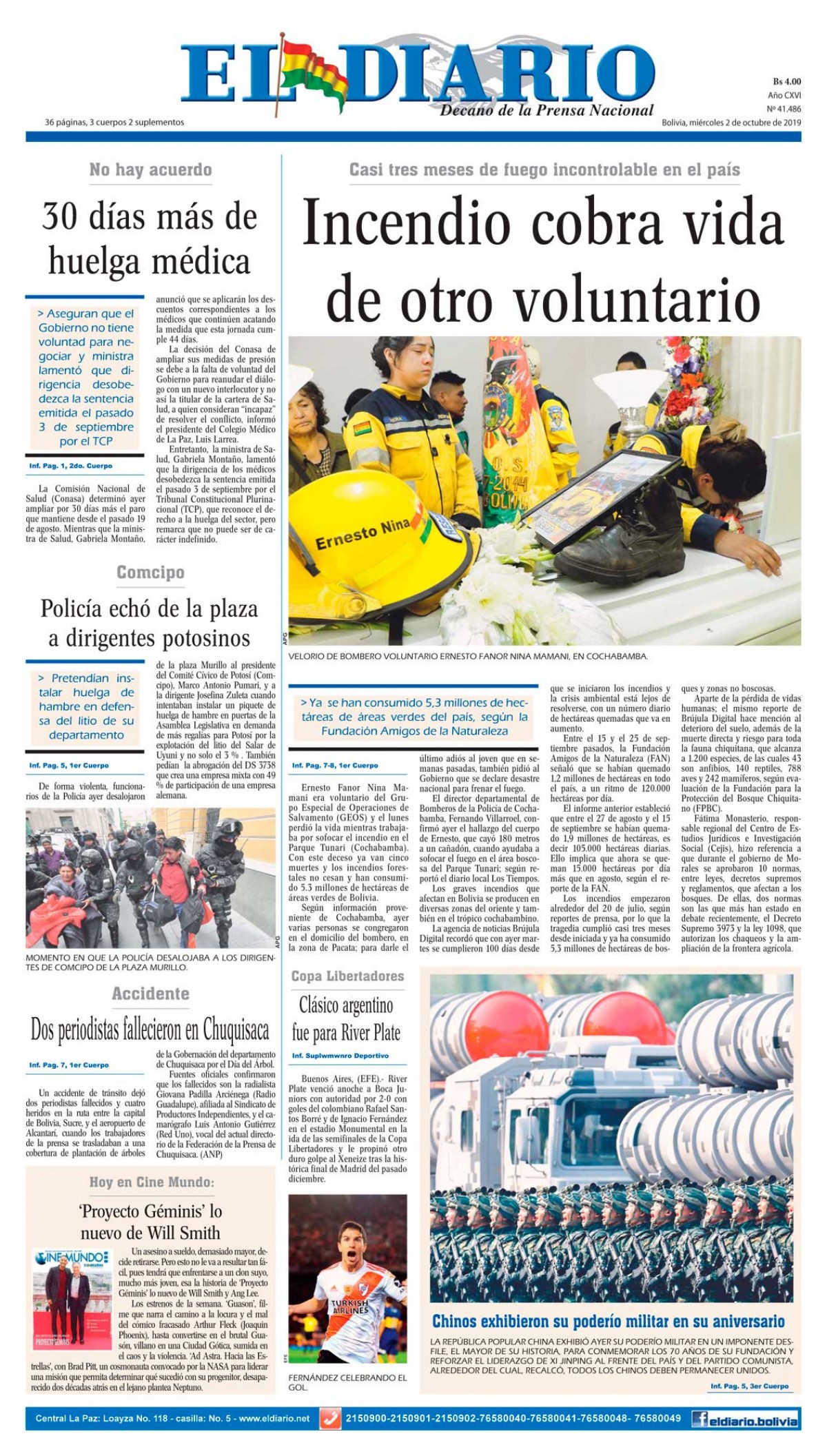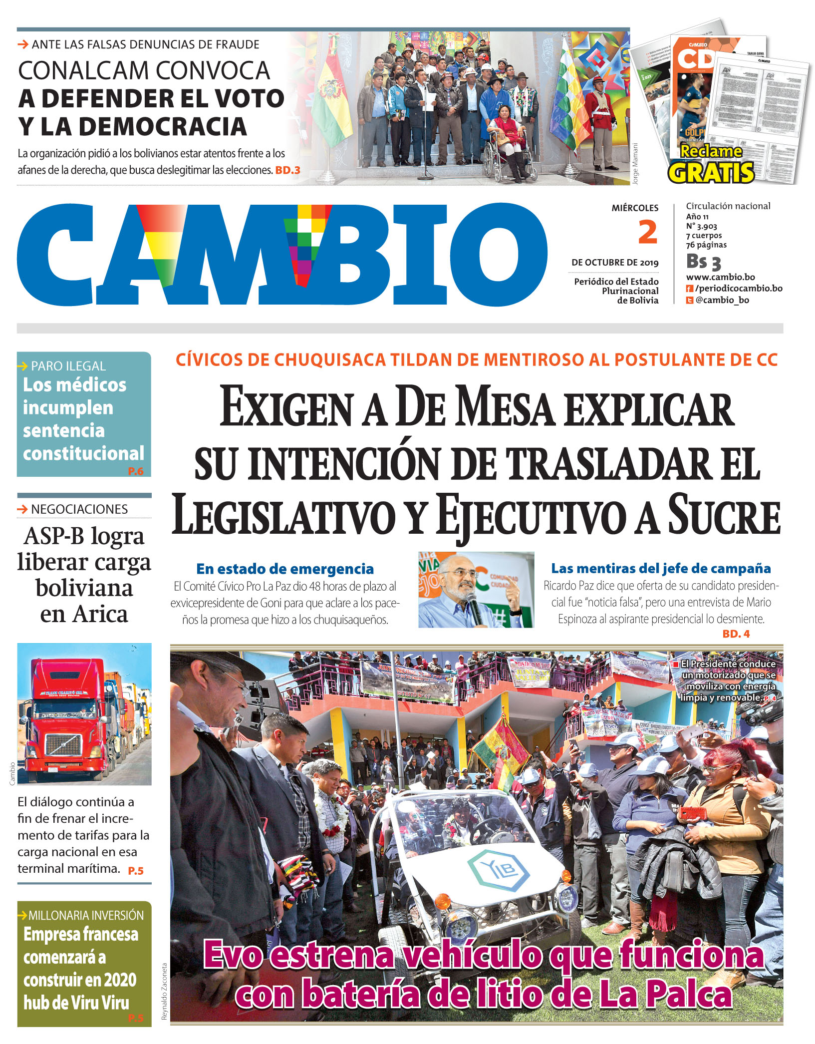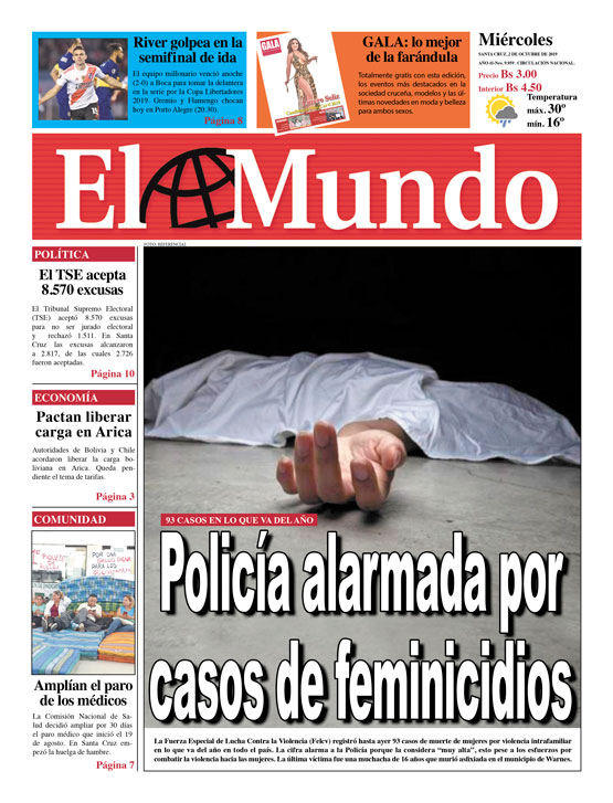 Edición 2-10-2019Portada Edición ImpresaPortada de la edición impresa del 2 de octubre de 2019El Deber – Los Tiempos – El Día – La Razón – Cambio – El Diario – Página Siete – Opinión