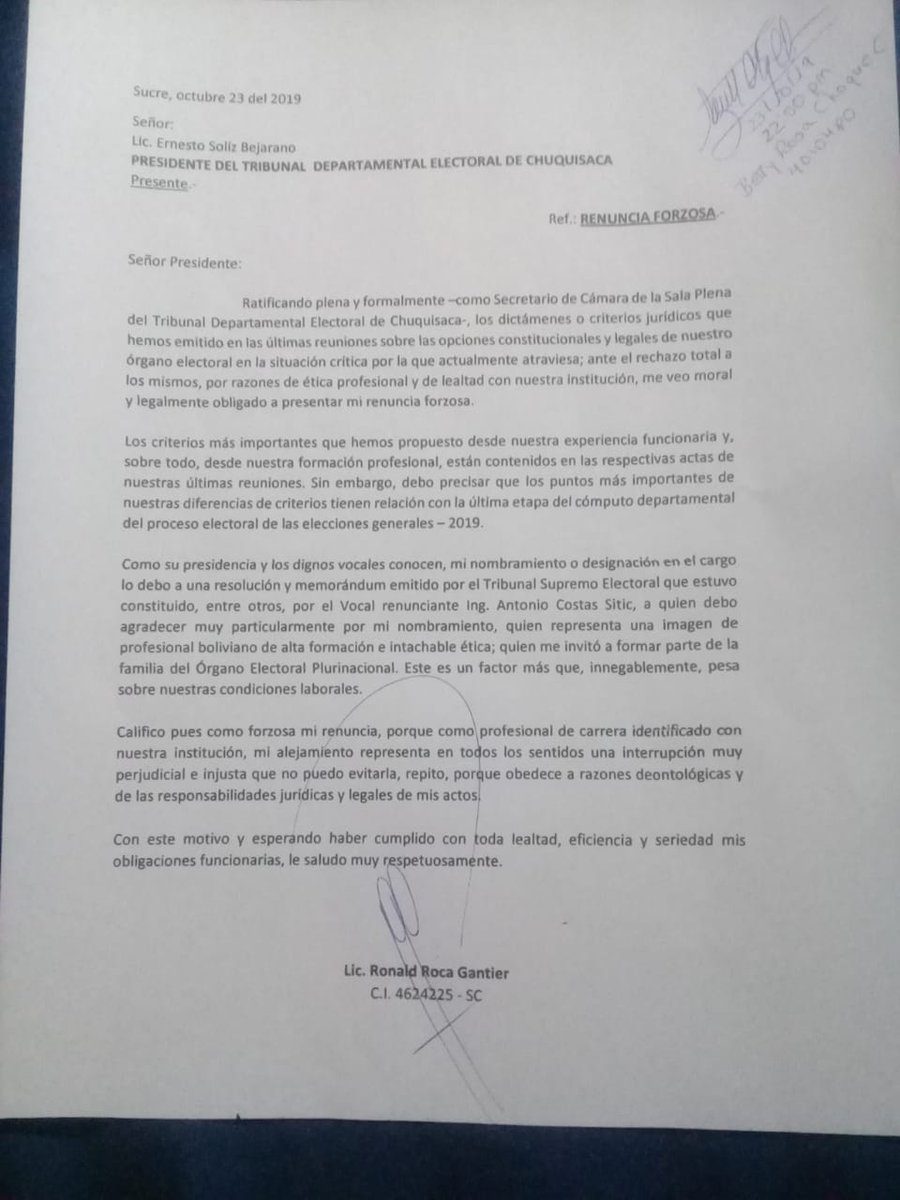 #SucreAhora Otra renuncia en el Tribunal Electoral Departamental (TED) de Chuquisaca. Dimi…