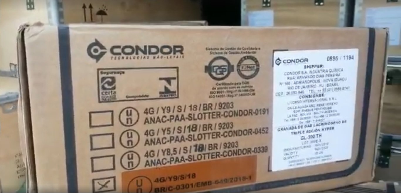 La Paz.- Graban a uniformados en el comando policial de la Av. 20 octubre en La Paz, sacando según la denuncia cajas de material explosivo.En el video se puede ver que son muchas cajas, en las cuales se puede leer que son granadas de gas lacrimógeno.