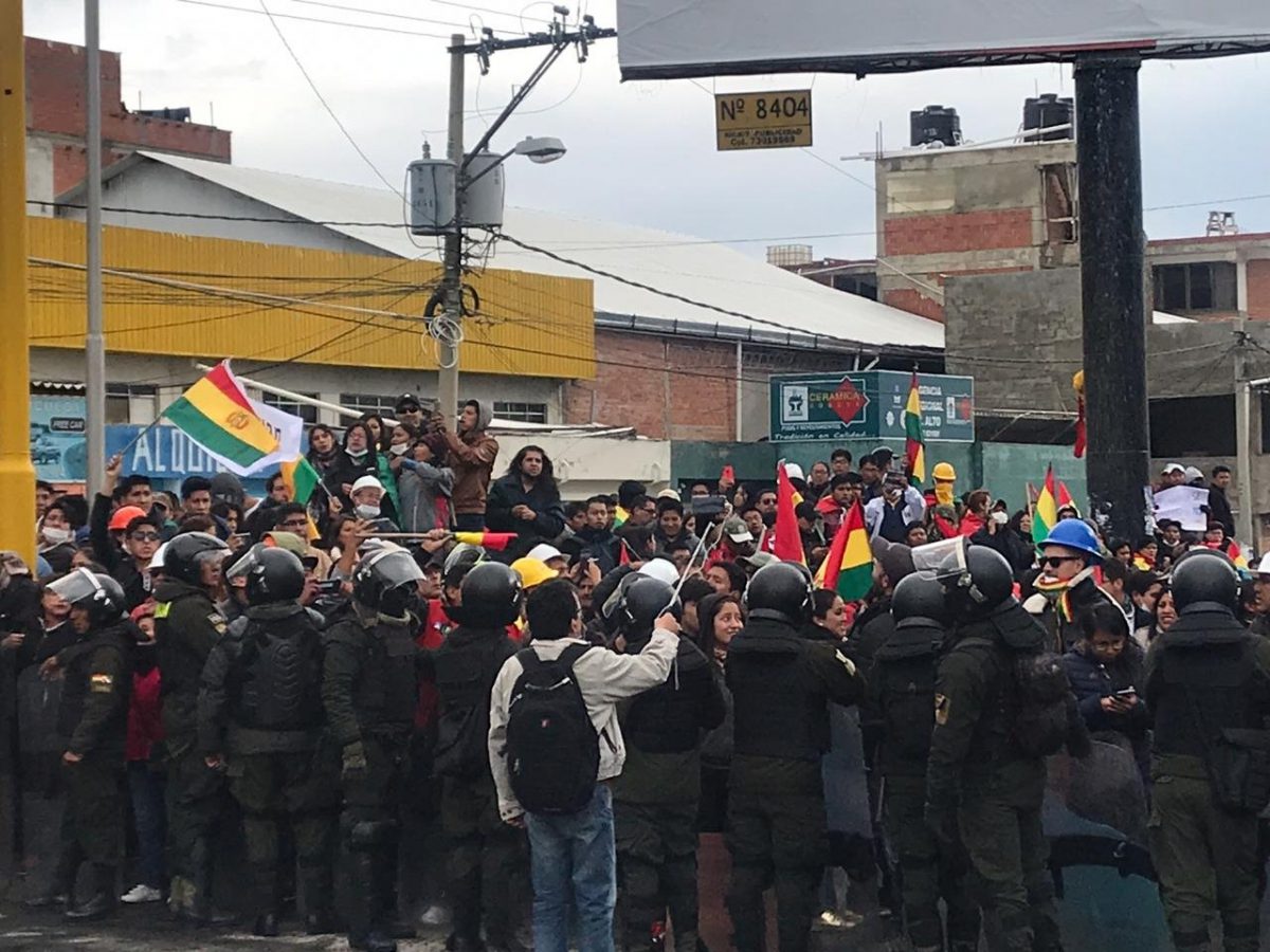 Es la tercera jornada consecutiva de tensión que se vive en la ciudad de El Alto ante los anuncios de llegada de Camacho, quien pretende dejar la carta de renuncia del presidente Evo Morales.
