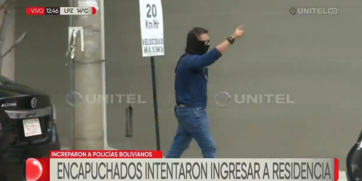 Apareció Capitán Quintana, ex-alumno de Escuela de las Américas de Georgia, esbirro Castrista y operador Chavista, que amenazaba con vietnamizar #Bolivia. @lopezobrador_ y @sanchezcastejon: ¿Qué hacen sus paramilitares encapuchados, asaltando Embajada, para rescatar a este narco? https://t.co/bsX8CapQ8R