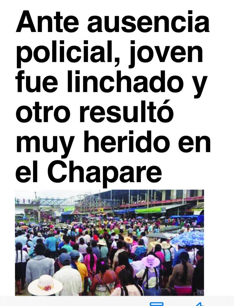 Chapare sigue sin permitir el retorno de la policía, robos, linchamientos, atracos, asaltos se suceden uno tras otro, y que otra actividad delictiva se realiza ? https://t.co/Wx18MDeJqe