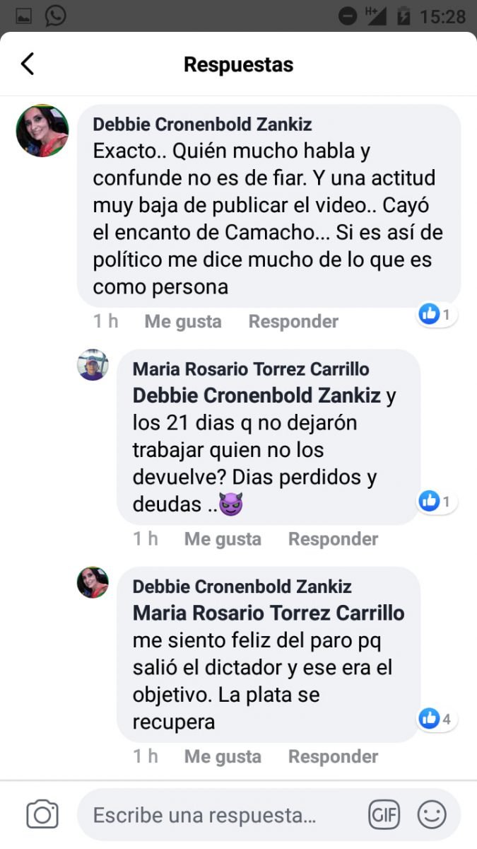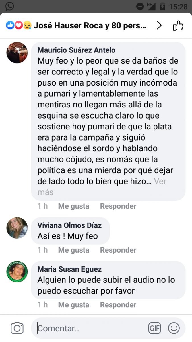 Críticas en las redes tras publicación de audio entre Pumari y CamachoCategorías Ayyy Don Este, DeRedes, PolíticaEtiquetas 08/12/2019 PARA LEER, PARA DEBATIRpara estar de acuerdo , para estar en desacuerdo Fuente: Ayyy Don Este[fbo] eju.tv