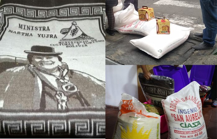 Los exservidores del Ministerio de Culturas y Turismo denunciaron un trato discriminatorio y humillante en la distribución de canastones navideñosos con relación a los nuevos contratados quienes, con poco tiempo de permanencia, recibieron una mejor asignación y vales de consumo en supermercados locales.Los recursos salen del Fondo Social constituido por los descuentos y multas por atrasos durante la gestión y al finalizar el año, se realiza una consulta si los funcionarios quieren un canastón en productos o en vales.En la gestión 2018 definieron que quienes estuvieron de tres a seis meses se beneficien de un panetón, Bs 200 en vales Emapa y Bs 410 en vales en un supermercado; mientras que los que trabajaron de siete a 12 meses recibieron panetón, Bs 200 en vales Emapa y Bs 1.020 en supermercado.Para este año solo se emitió un comunicado pidiendo recoger los presentes navideños hasta el viernes 27, cuando se enteraron que los despedidos tenían derecho a recibir solamente un panetón y un quintal de azúcar, siempre y cuando hayan trabajado más de seis meses antes de ser retirados.Sin embargo para el resto de los funcionarios se asignó un quintal de azúcar y un quintal de arroz, panetón, vino, una frazada con la imagen de la ministra Yujra y vales por Bs 500, entre otros productos.A tiempo de negar tratos humillantes,  el Ministerio señala a través de un comunicado, que la ministra Yujra en ningún momento conoció ni intervino en las acciones del Fondo Social para la compra y entrega de los presentes navideños.Indican que la compra de la cama con la imagen de la ministra y su distribución fue por entera decisión de esta comisión conformada por personal antiguo de la anterior gestión de Gobierno.Señalan que las versiones difundidas corresponden a gente que perdió todos sus de los que gozaban, con el único objetivo de dañar la imagen de una autoridad y pide a la opinión pública no se deje sorprender por intereses mezquinos de quienes han detentado el poder durante cerca de 14 años y pretendan afectar a la gestión con bajezas.Fuente: https://www.erbol.com.bo