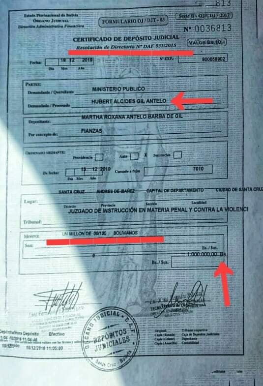 EL CHANCHITO PARA HUBERT ESTÁ SERVIDOpagó su fianzaSegún un documento al que tuvieron acceso los medios, un familiar de Hubert Gil, hizo el depósito judicial de 1.000.000 de bolivianos de fianza. Deja Palmasola y pasará navidad en su casa.La juez además le permitió que puede trabajar de día y solo estar detenido por las nochesDe los 7.7 millones de dólares que Hubert Gil y su organización se pelaron de la cooperativa no apareció ni un peso.GoleadaHubert Gil 3 — Abogado de Cotas 0SI TE LO TOPAS POR LA CALLEdeseale feliz navidad