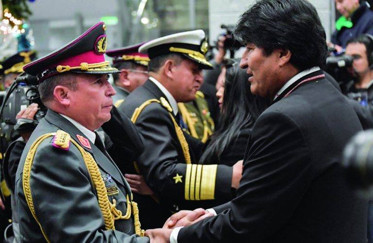 3 Las Fuerzas Armadas nacimos durante la lucha contra la colonia y moriremos anticolonialistas porque es nuestro orgullo y nuestra razón de vida (…). Las Fuerzas Armadas son del pueblo y trabajan para el pueblo porque apoyamos la nacionalización de los hidrocarburos y las políticas de Estado que favorecen a los más necesitados (agosto de 2019).