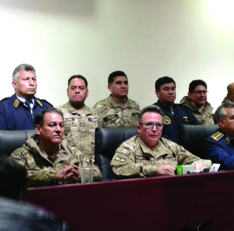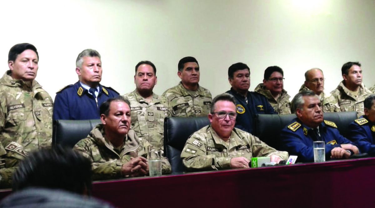 A las 18:45 de ese lunes todos los generales y almirantes de las FFAA se reunieron de emergencia en la oficina del Jefe de Operaciones, en el piso 4 del Comando, en la zona de Obrajes.