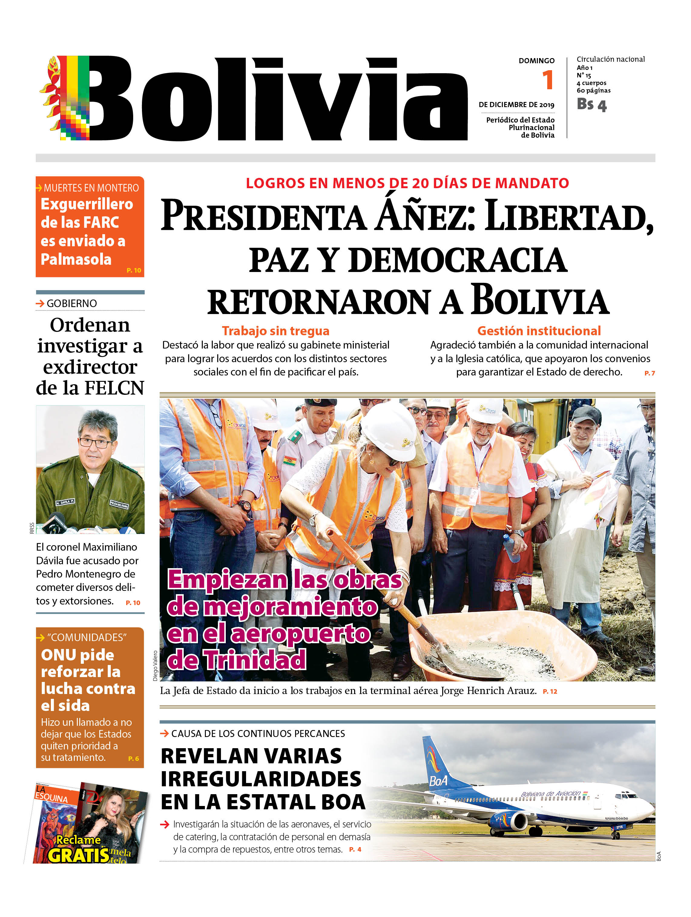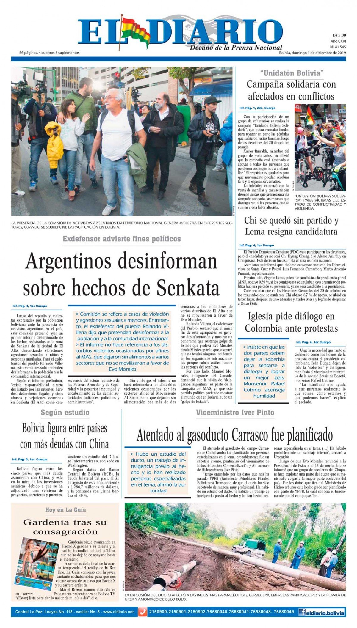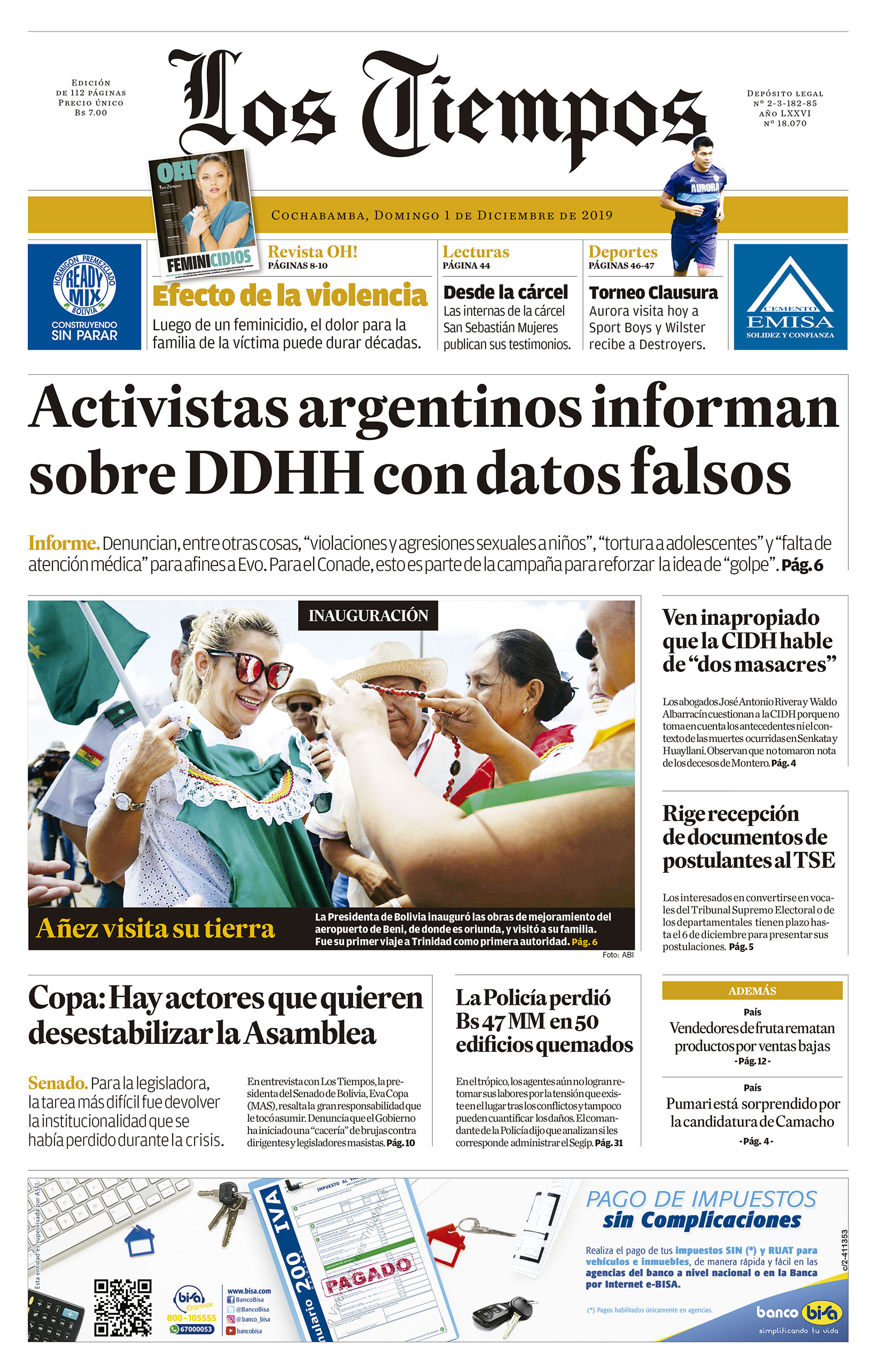 Edición 1-12-2019Portada Edición ImpresaAPERTURA EDICIÓN IMPRESAEl Deber – Los Tiempos – El Día – La Razón – Cambio – El Diario – Página Siete – Opinión