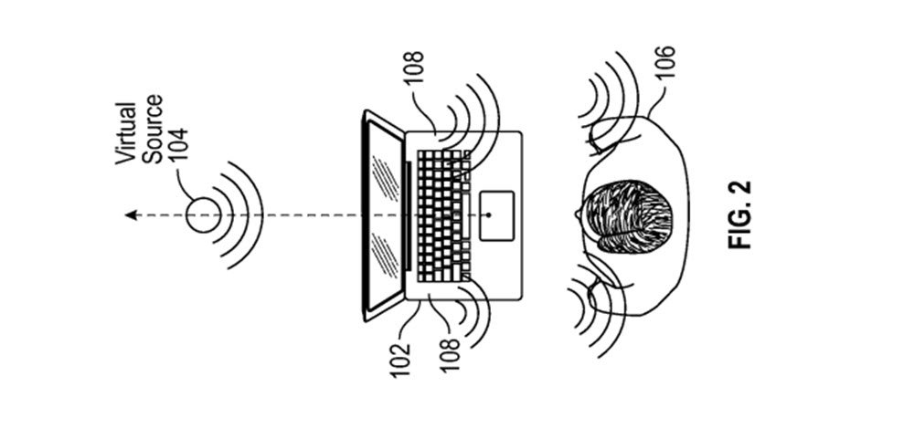 Apple quiere que los usuarios disfruten de un sonido más inmersivo, tal como se desprende de una de sus últimas patentes aprobadas. Así que es posible que en un futuro no muy lejano, la Macbook cuente con un sistema de altavoces virtuales.Un concepto que mejoraría notablemente la experiencia del usuario al visualizar cualquier contenido multimedia, videojuegos o potenciar cualquier aplicación de realidad aumentada.Esta patente se presentó en 2018, y se basa en un sistema que permite crear en el usuario la sensación de que el sonido no proviene de los auriculares o altavoces, sino que se origina de otro lugar, ya que se “posiciona virtualmente en el espacio”. Así que viendo, por ejemplo, un recital en el dispositivo, el usuario podría tener esa sensación de estar en el lugar.Para explicar este concepto, en la presentación de la patente se señala esta imagen junto con una explicación sobre el funcionamiento de un sistema acústico virtual en comparación con un sistema de audio tradicional:
