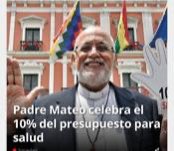 El padre Mateo celebra, logró que se destine el 10% para salud. Fue una consigna que él se…