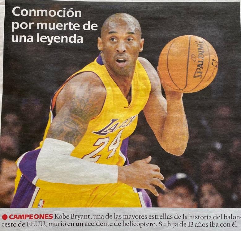 En un accidente de su helicóptero murió Kobe Bryant una de las mejores estrellas del baloncesto en los EE.UU. Su hija de 13 años iba con él junto a otros amigos. El hecho causó conmoción mundial. Q.E.P.D. https://t.co/uqXOABmzGY
