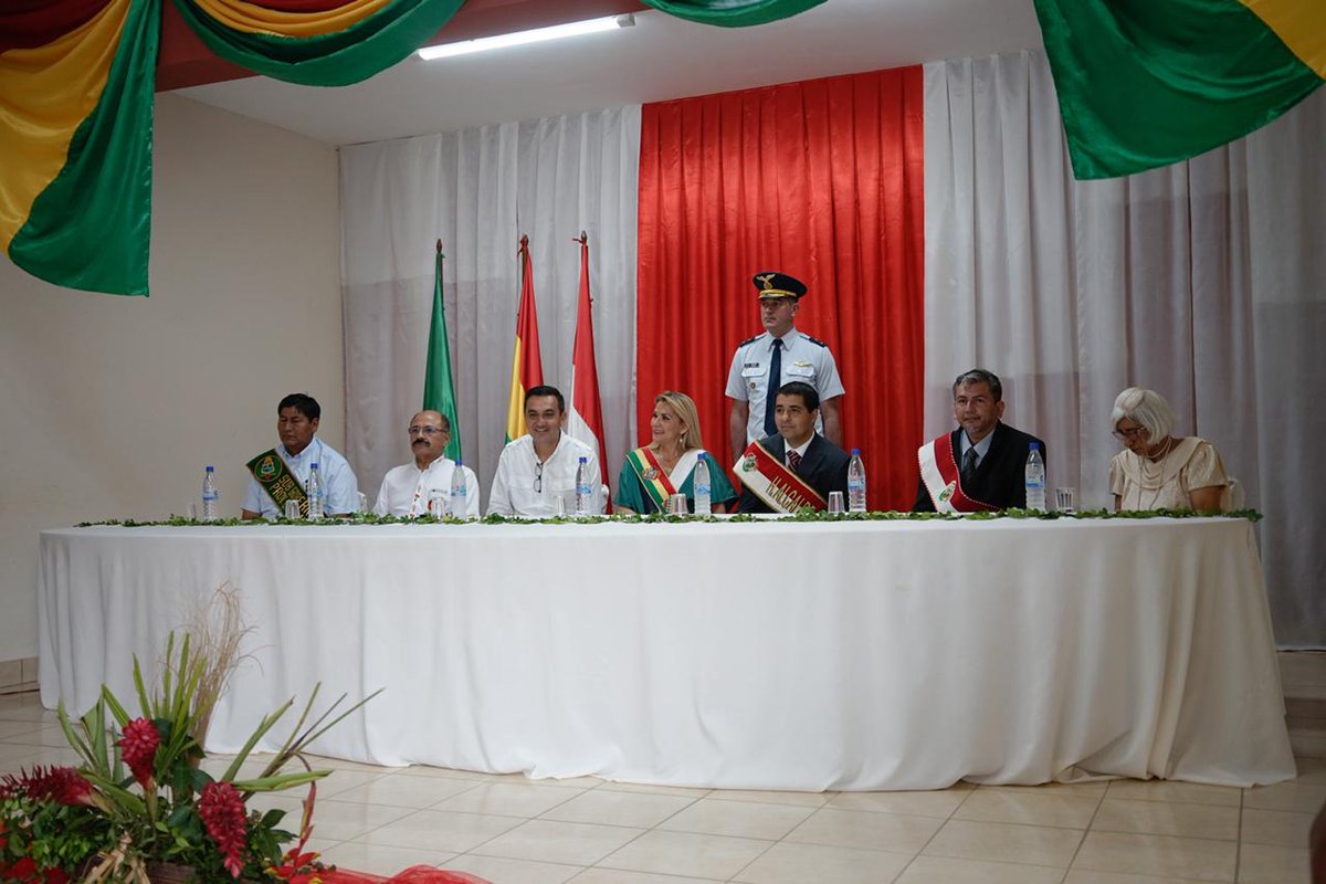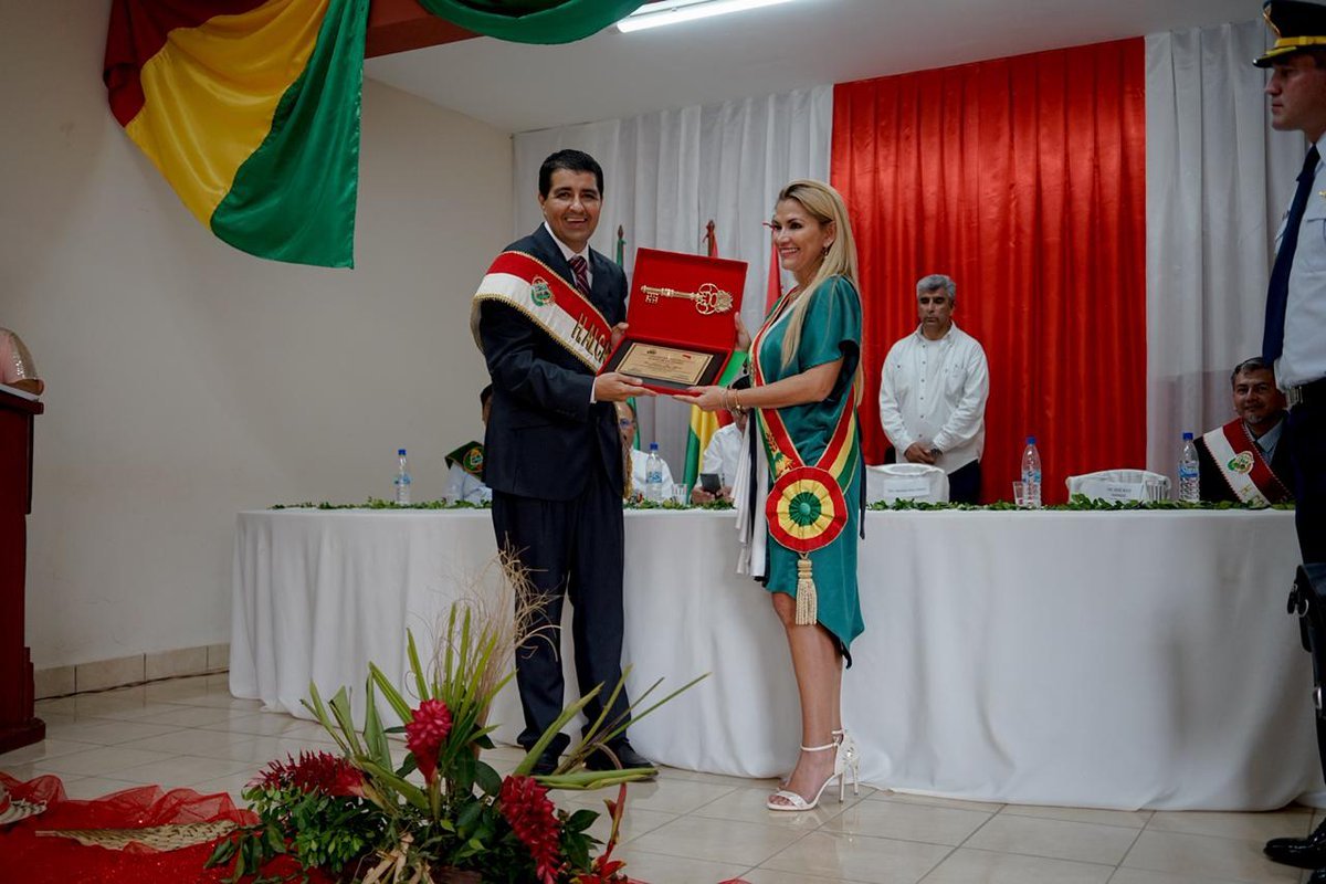 Hoy visitamos junto al Ministro de la Presidencia y al Ministro de Salud, el Municipio de Santos Reyes en su aniversario. He recibido con mucho cariño las llaves de la ciudad y me siento feliz de llevarles con el @MinSaludBolivia equipamiento p/ su hospital e ítems ¡Felicidades! https://t.co/afujHiFK8p