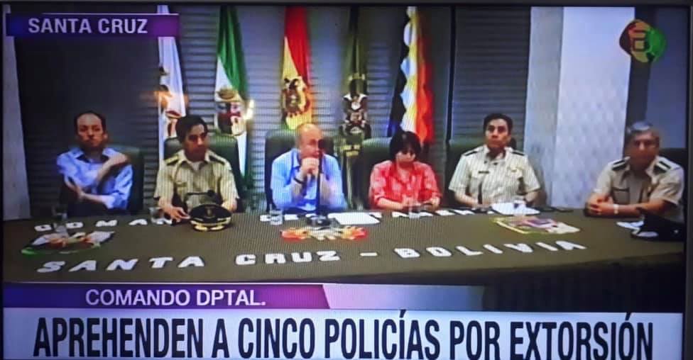 El ministro de Gobierno, Arturo Murillo, dio a conocer que se detuvo a 5 policías del grupo DACI acusados de haber extorsionado a 4 ciudadanos brasileños quienes fueron abordados el pasado 14 de febrero. Los policías del grupo DACI pidieron $us. 50.000 para poner en libertad a los detenidos, quienes entregaron $us. 18.000 y Bs. 14.000.-Se trata de los siguientes efectivos de la policía destinados a la FELCN que serán puestos a disposición de un juez cautelar;Tte. Ronald Cardoso ParadaSubTte. Josep DelgadilloSgto. Reyna Sonia Gutiérrez ValerianoSgto. Luis Miguel OsinagaSgto. Silvio Vasquez García