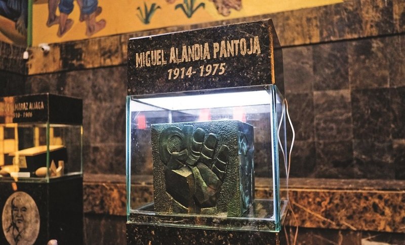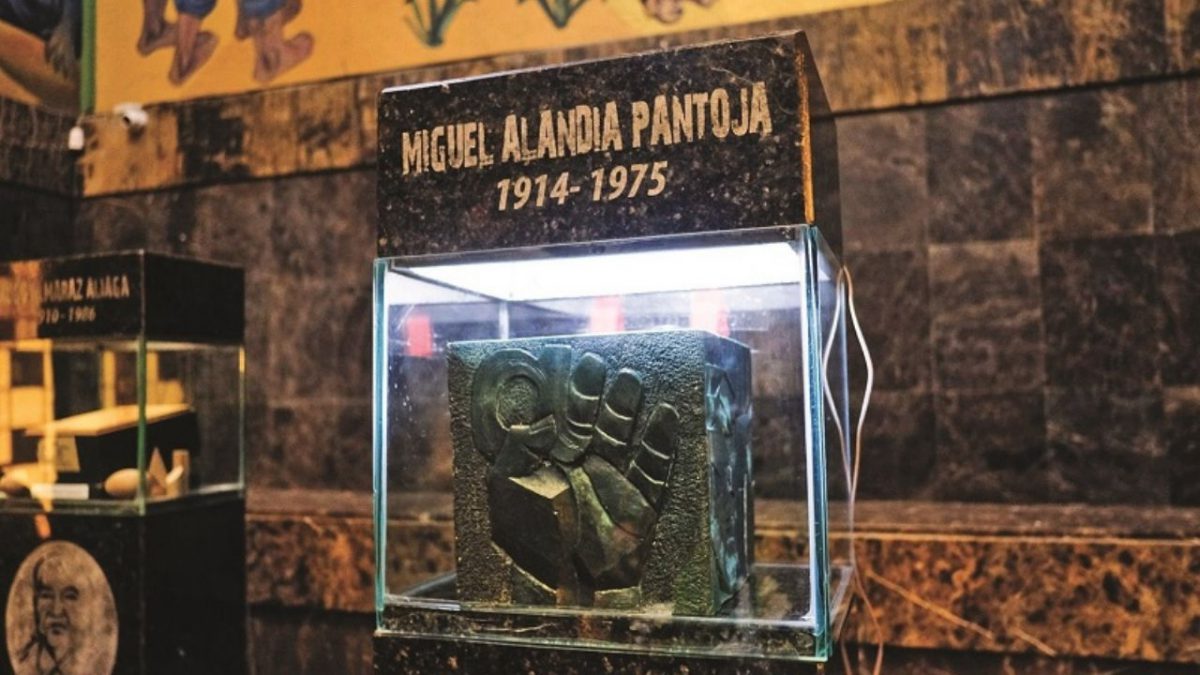 Bajo las figuras de colores que un día plasmó en un mural y rodeado de fotos familiares monocromáticas y réplicas de trabajos que resumen su carrera, los restos de Miguel Alandia Pantoja (1914-1975)  fueron homenajeados    ayer en el Museo de la Revolución Nacional. Sin lágrimas esta vez, sino con la abrumadora seguridad de que su mortalidad no acabó con su arte, sino que al contrario, está más vivo que nunca.