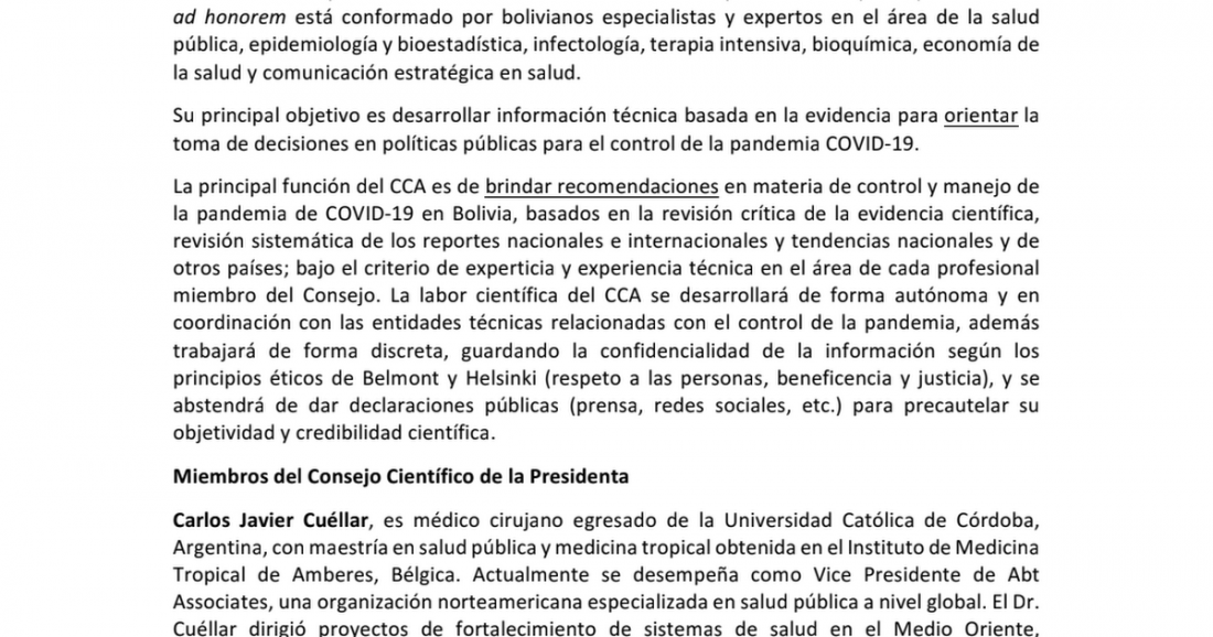 Agradezco a los miembros del Consejo Científico Asesor que, de modo generoso, me acompañan con recomendaciones para luchar contra el virus. ¡Gracias! Comparto un documento con sus trayectorias https://t.co/kTRe2qTsUO
