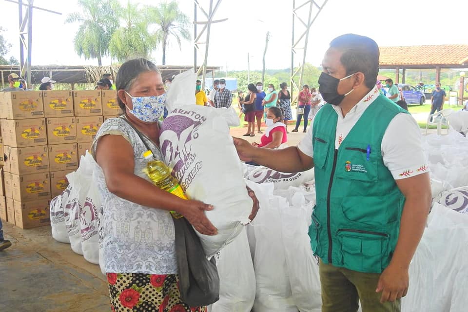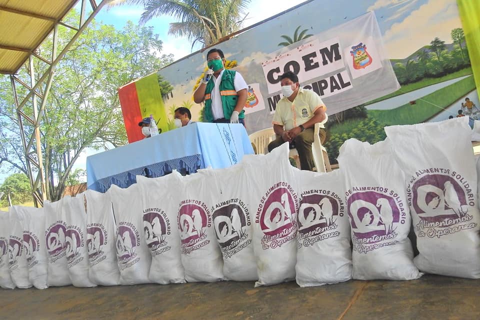 Santa Cruz.-En instalaciones de la feria artesanal de Ascensión de Guarayos, la Gobernación cruceña, inició la entrega de las 1.679 bolsas del Banco de Alimentos Solidario (BAS), que beneficiarán a todas las familias de escasos recursos de la provincia, que fueron registradas mediante el sistema informático, de la página www.santacruzayuda.org