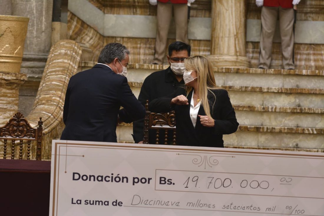 Combatir al Coronavirus es un trabajo en equipo, por eso quiero agradecer a ASOBAN y a empresarios del sector privado por su donación de 22 millones de bolivianos. Se destinarán a adquirir tests, material de bioseguridad y expandir y equipar laboratorios con el apoyo del PNUD. https://t.co/RihtIFVtuw