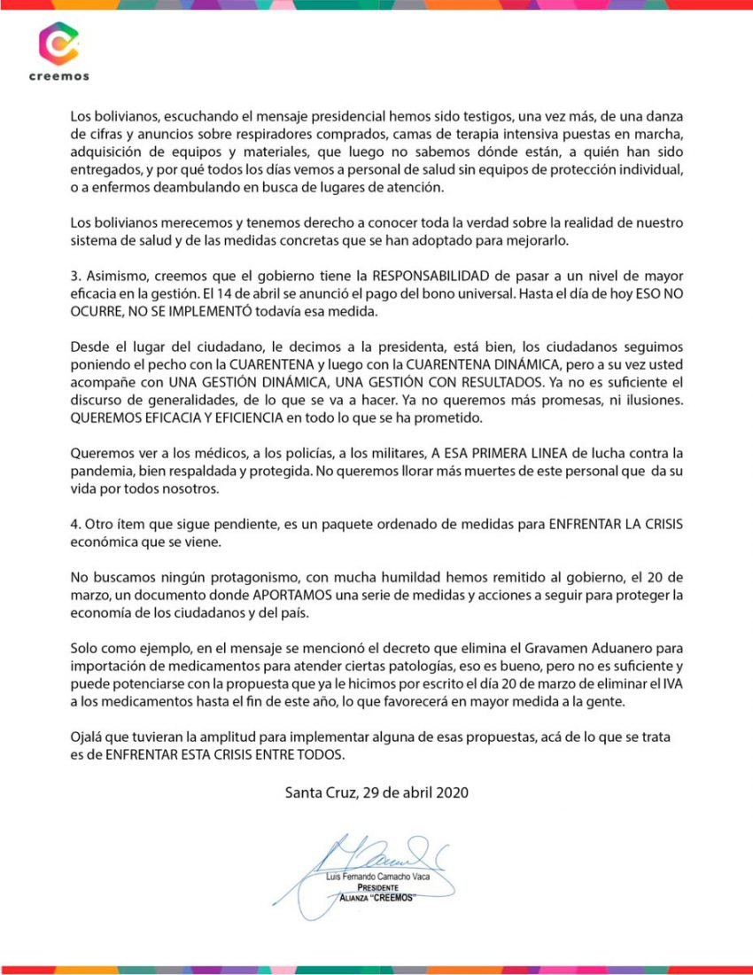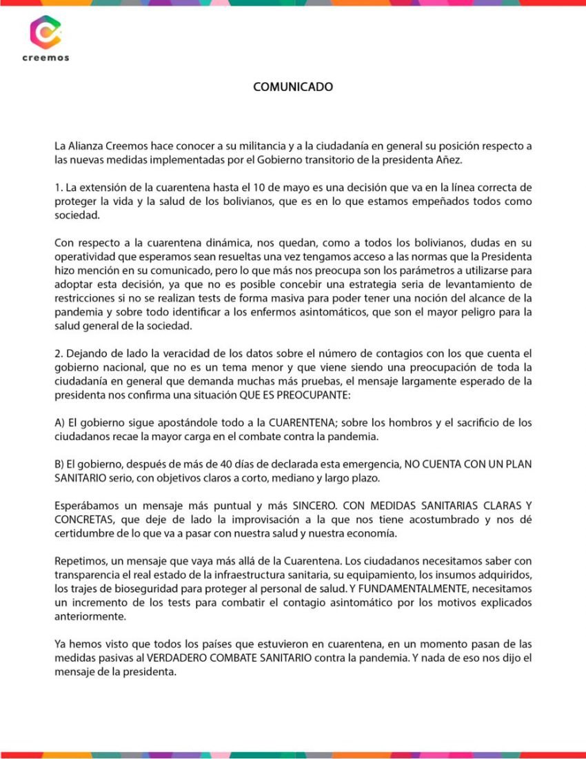 Como Alianza Creemos expresamos nuestra posición ante las nuevas medidas para enfrentar el Covid-19.Estamos seguros que la extensión de la cuarentena es necesaria, pero no puede ser permanente. El pueblo necesita un plan sanitario serio, con medidas a corto, mediano y largo plazo https://t.co/P3P0j6mtns