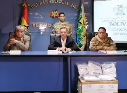 Las declaraciones de las tres autoridades se produjeron durante la entrega de 15.000 barbijos y 180 trajes de protección donados por la Agencia Boliviana Espacial (ABE) y la empresa China Great Wall Industry Corporation