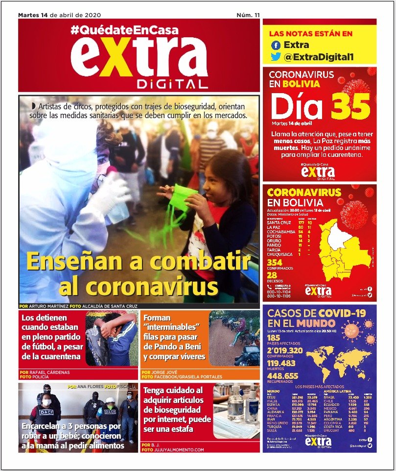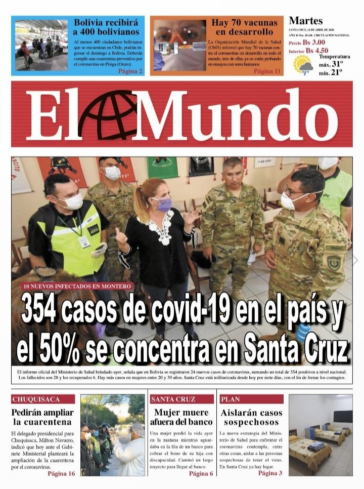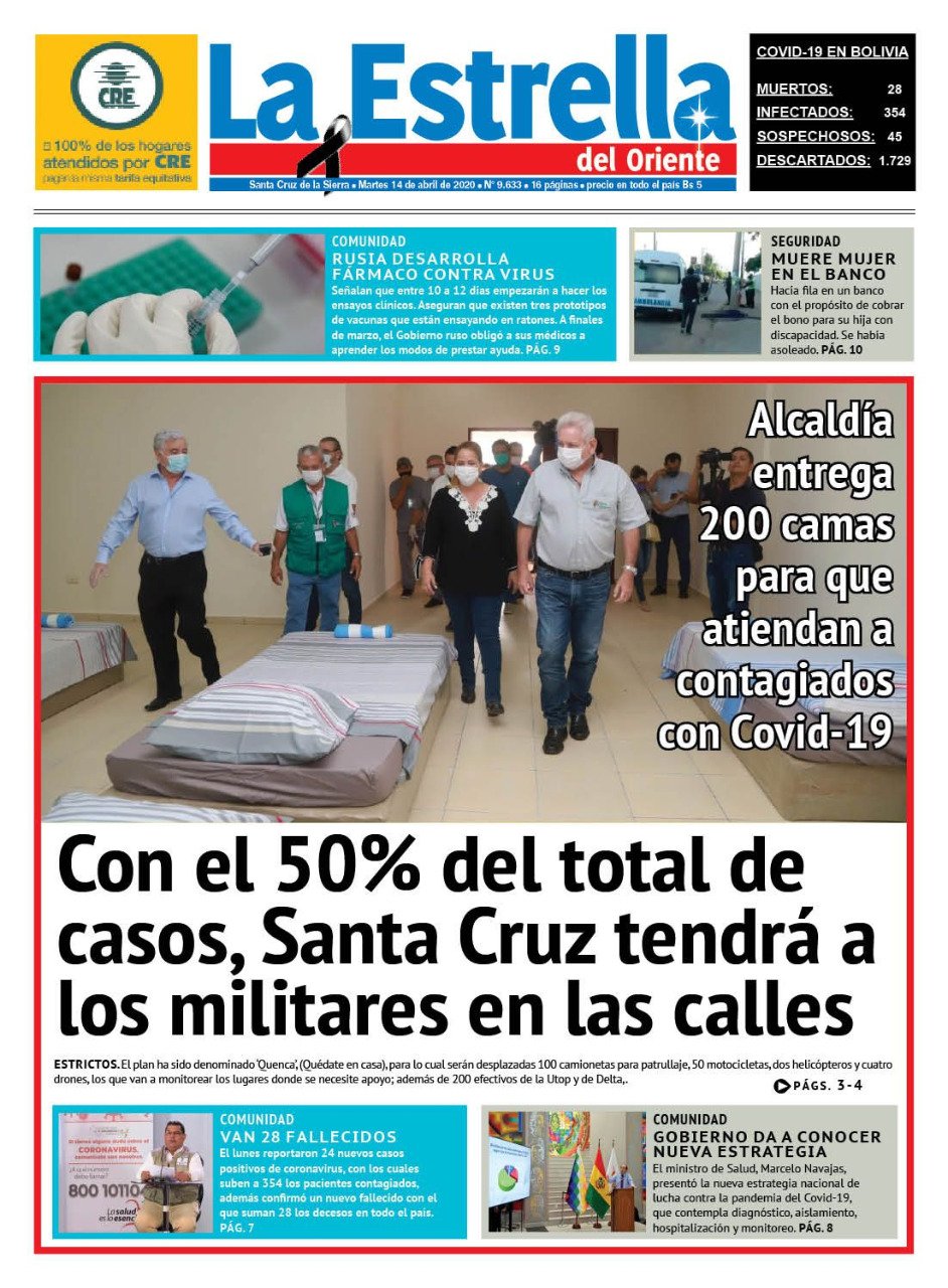 La Estrella del Oriente – Los Tiempos – El Día – La Razón – Cambio – El Diario – Página Siete – Nuevo Sur- El Alteño-Gente- El País- La Patria