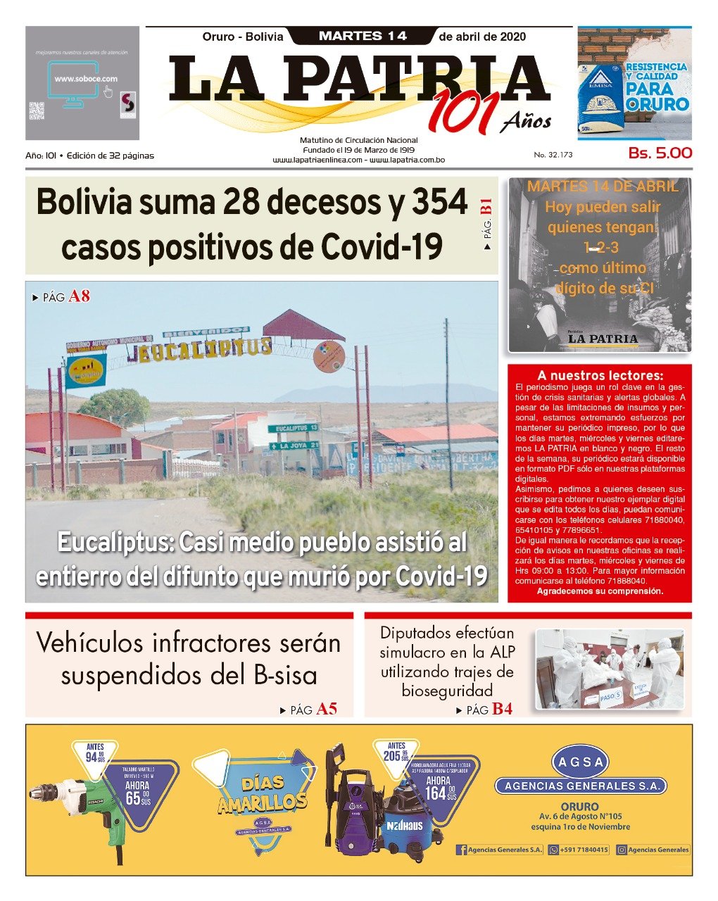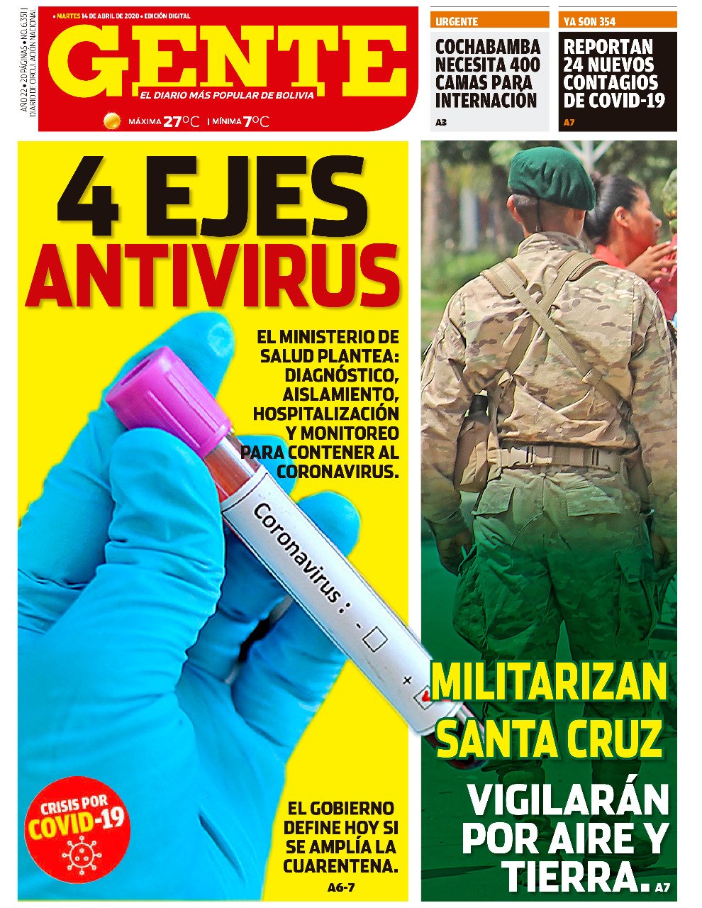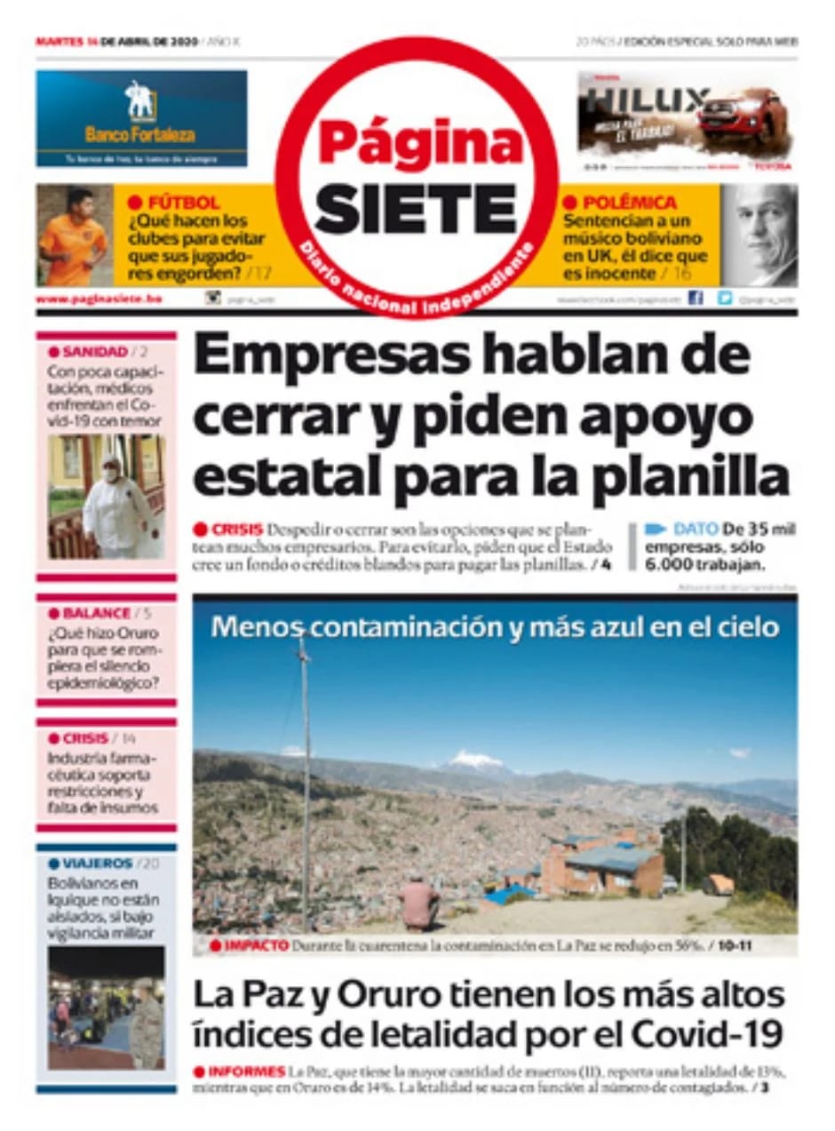 La Estrella del Oriente – Los Tiempos – El Día – La Razón – Cambio – El Diario – Página Siete – Nuevo Sur- El Alteño-Gente- El País- La Patria