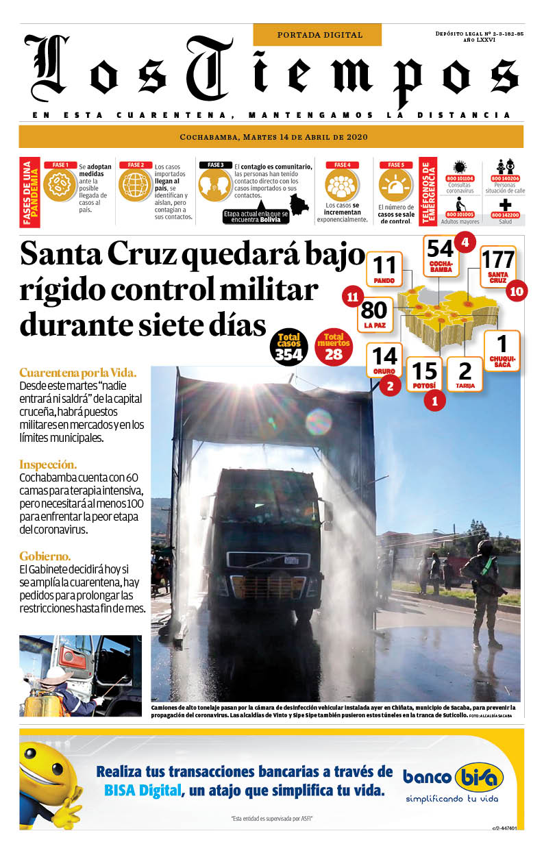 La Estrella del Oriente – Los Tiempos – El Día – La Razón – Cambio – El Diario – Página Siete – Nuevo Sur- El Alteño-Gente- El País- La Patria
