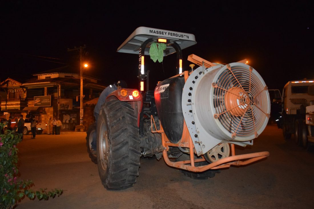La noche de este jueves comenzó el trabajo de desinfección de calles y avenidas en Samaipata, para luego continuar con Mairana, Los Negros, Pampagrande y Mataral.