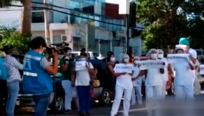 “Tenemos a todo el personal de enfermería exigiendo todas las condiciones para poder trabajar y darle las atenciones a nuestra población asegurada, pero todos corremos el riesgo desde marzo hasta hoy. No tenemos las condiciones ni equipos de bioseguridad para los trabajadores de esta regional”, indicó uno de los manifestantes.