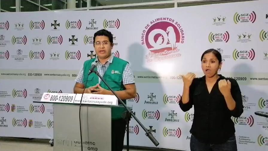 Vladimir Peña, secretario de Gobierno de la Gobernación cruceña,, informa sobre la distribución del Banco de Alimentos Solidario (BAS) en todo el departamento de Santa Cruz.