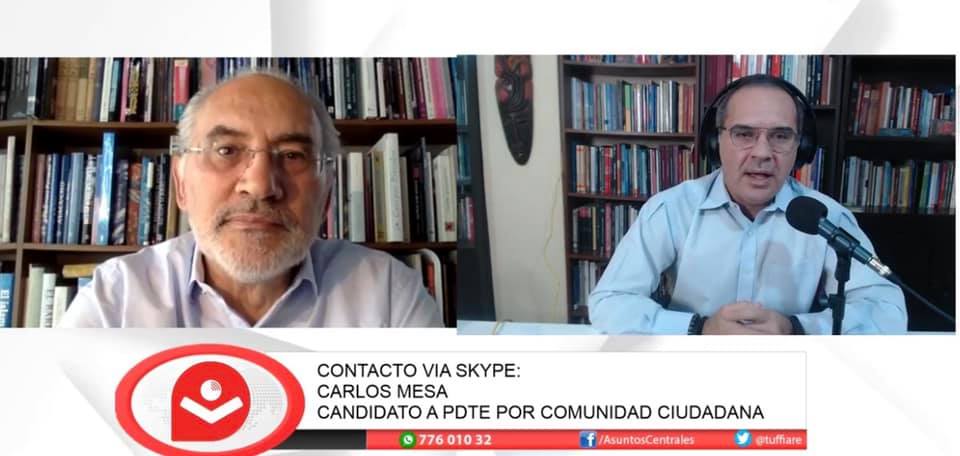 El candidato presidencial de Comunidad Ciudadana, Carlos Mesa, habló en Asuntos Centrales para explicar que su carta a la Presidenta en la que le pide que convoque a un encuentro nacional no tiene un motivo electoral.