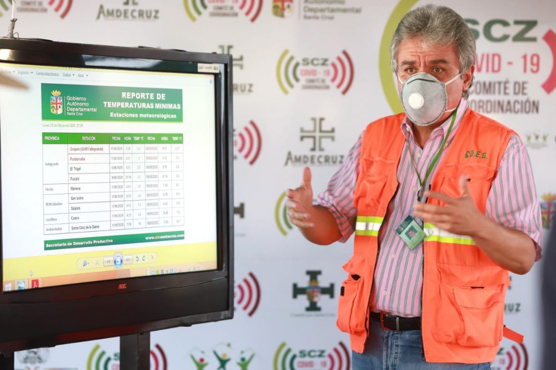 Con respecto a los pronósticos, Luis Alberto Alpire, secretario de Desarrollo Productivo, puntualizó que se tendrán vientos del norte el día miércoles con ráfagas de 70 km/h, a lo que suma un sur para el jueves, manteniendo la misma intensidad del viento, por lo que la temperatura en Santa Cruz bajará a ese día a 14° y 24 la máxima; en los valles cruceños entre 9 y 19°, por lo tanto, para este fin de semana se esperan días fríos.