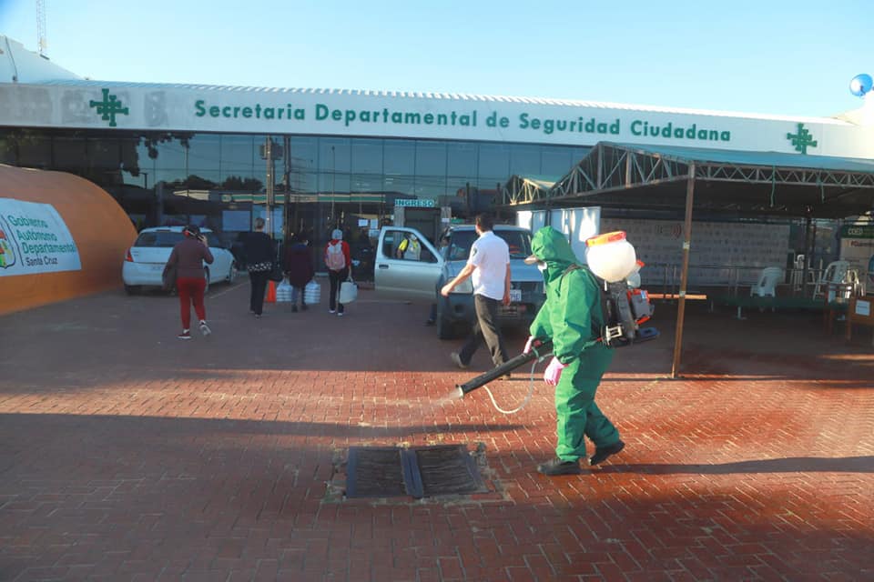 Santa Cruz.- El Centro de Operaciones de Emergencia Departamental (COED) , luego de que la logística y el personal fuera trasladado a las dependencias del Centro de Educación Ambiental (CEA), fue fumigado en su totalidad, es decir, en la parte externa y en todas las oficinas, cumpliendo las normas de bioseguridad contra el coronavirus, cuya enfermedad han contraído algunas autoridades y funcionarios que trabajaban en dichas instalaciones.