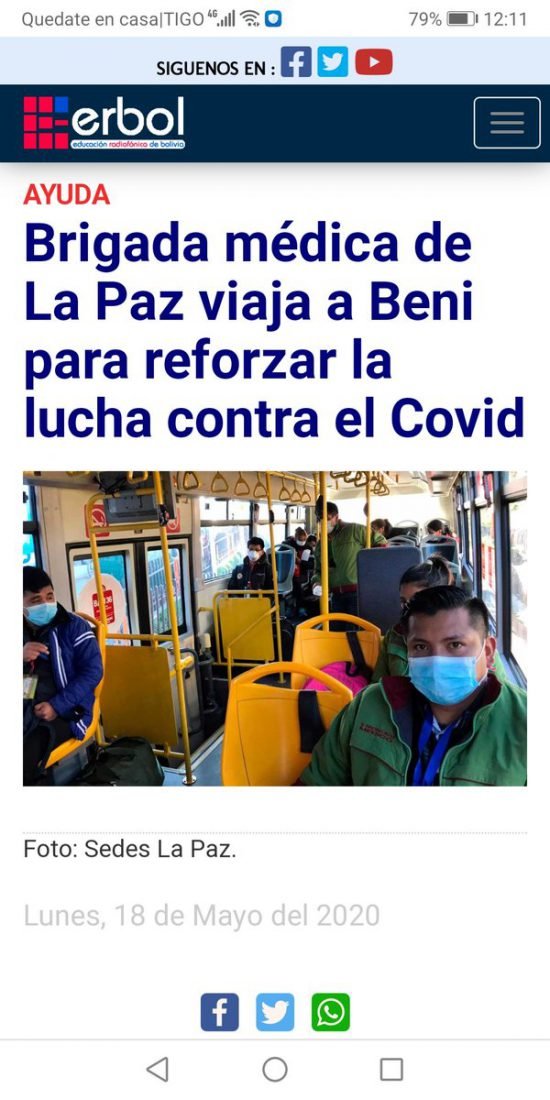 Mis felicitaciones y homenaje a los heroicos salubristas paceños, quienes arriesgando su vida van al Beni para ayudar a una región hermana diezmada por el #coronavirusbolivia. Emocionante ejemplo de solidaridad médica. ¡Bravo, bravo! https://t.co/ElfhDETgZ2