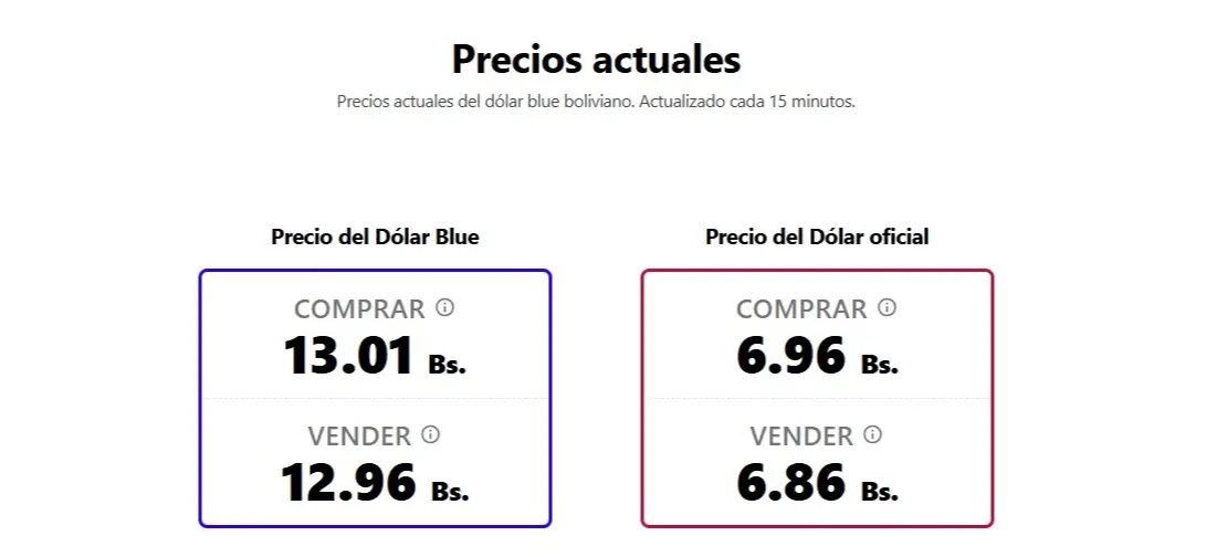 Por otro lado, según datos obtenidos por el sitio https://bolivianblue.net/#google_vignette, el dólar blue boliviano, que se actualiza cada 15 minutos, cotiza este sábado una variación, ya que a la compra se registra en 13.01 (BOB) y 12.96 (BOB) para la venta.