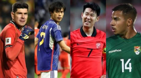 Calos Lampe (Bolivia), Mitoma (Japón), Son Heung-Min (Corea del Sur) y Robson Matheus (Bolivia)