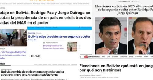 El balotaje presidencial en Bolivia entre Jorge “Tuto” Quiroga y Rodrigo Paz ha captado la atención de medios internacionales, que destacan el carácter inédito de esta elección tras el fin de la hegemonía del Movimiento al Socialismo (MAS).