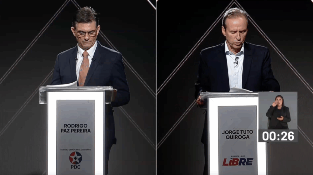 A diferencia de anteriores debates, Rodrigo Paz Pereira, de habitual tono narrativo horizontal, esta vez agregó a su discurso enunciados concretos sobre las medidas que adoptará en caso de resultar electo. Vestido de traje y corbata, dio la impresión de seguridad, aplomo y dominio escénico. En el debate en primera vuelta al que también asistió Tuto Quiroga, éste varias veces le había preguntado si lo apoyaría en tal o cual medida de gobierno. Esta vez, quien se apropió de ese personaje fue Paz que preguntó a Tuto si contaría con su apoyo para llevar adelante su plan de gobierno e incluso, que en caso de perder, se quedara en el país a trabajar con las bancadas parlamentarias en los cambios necesarios.