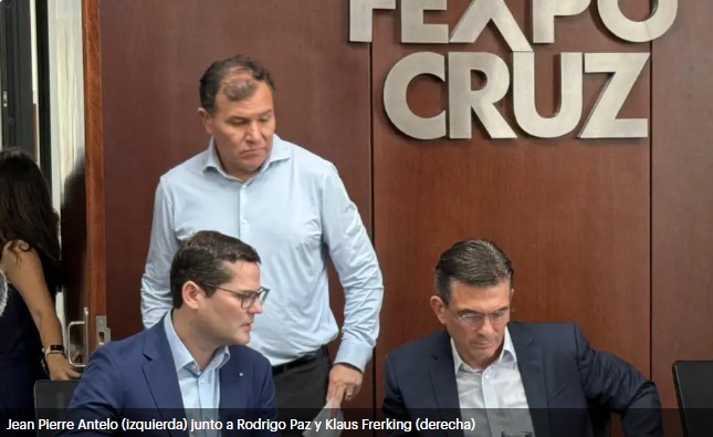 Tras la reunión entre el presidente electo Rodrigo Paz y representantes del sector productivo del país, el titular de la Cámara de Industria, Comercio, Servicios y Turismo de Santa Cruz (Cainco), Jean Pierre Antelo, calificó de positivo el encuentro, que se realizó en la ciudad de Santa Cruz, donde los sectores expusieron sus necesidades y propuestas para encaminar la economía de Bolivia.