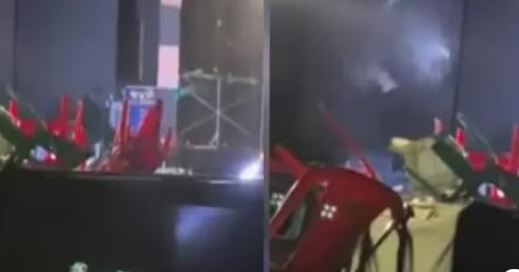 La denuncia se hizo mediante redes sociales, donde se ve como los asistentes del evento arrojan sillas y bebidas al escenario.