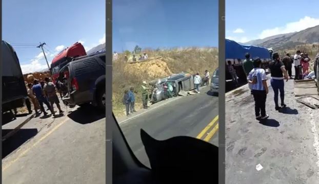 Según los testigos, el incidente ocurrió cuando una vagoneta invadió el carril contrario y colisionó contra dos vehículos que circulaban en sentido opuesto. “El causante del accidente es este de aquí, colegas. Invadió carril y no le importó que llevaba a su familia. Impactó primero a un camión y luego a otros vehículos”, relató un testigo que presenció los hechos.