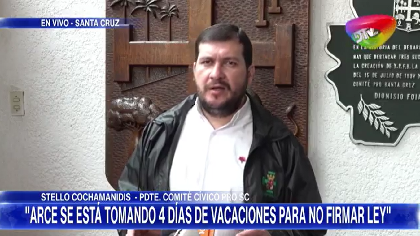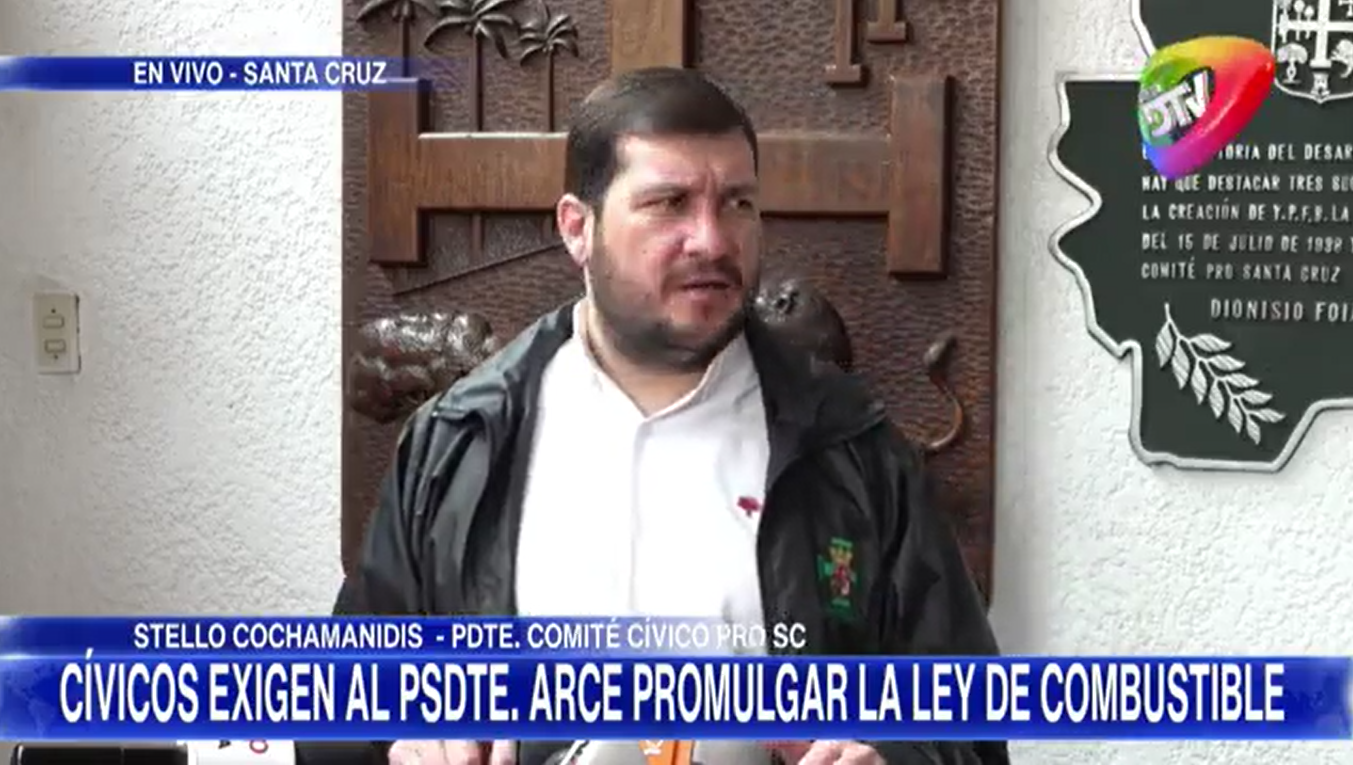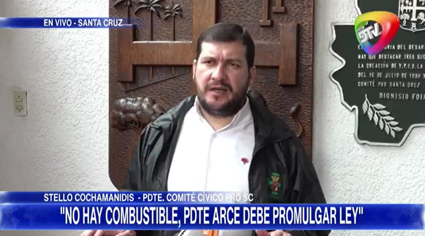 El presidente del Comité pro Santa Cruz, Stello Cochamanidis, denunció este lunes que el país se encuentra paralizado por la falta de combustibles debido a la inacción del presidente Luis Arce, quien –a pesar de haber sido la ley sancionada en la Asamblea Legislativa Plurinacional el pasado jueves–  aún no la promulga para permitir la importación directa de carburantes por parte de privados; demora que, a juicio del dirigente cívico, no responde a trabas técnicas sino a la ausencia de voluntad política.