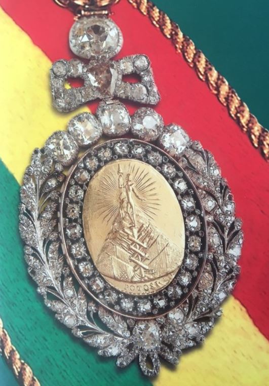 Este 2025 la joya estatal también cumple su Bicentenario de creación. El primero en lucirla fue el Libertador Simón Bolívar para quien se diseñó esta joya en 1825, y a su muerte (1830), expresó en su testamento, la decisión de devolver al pueblo de Bolivia la medalla que había recibido de él.