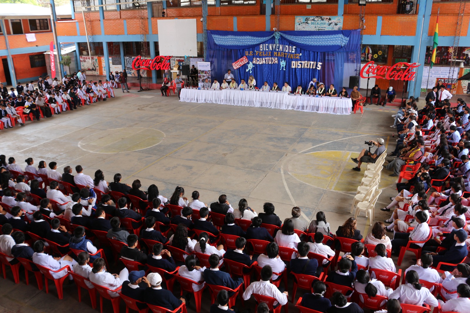 El acto oficial contó con la participación de representantes del Gobierno Autónomo Municipal de Quillacollo, Coca-Cola Bolivia, Embol, Aguatuya, dirigentes de la OTB Hansa, la comunidad educativa de la Unidad Educativa Félix Martínez, además de vecinos y beneficiarios de ambos proyectos.